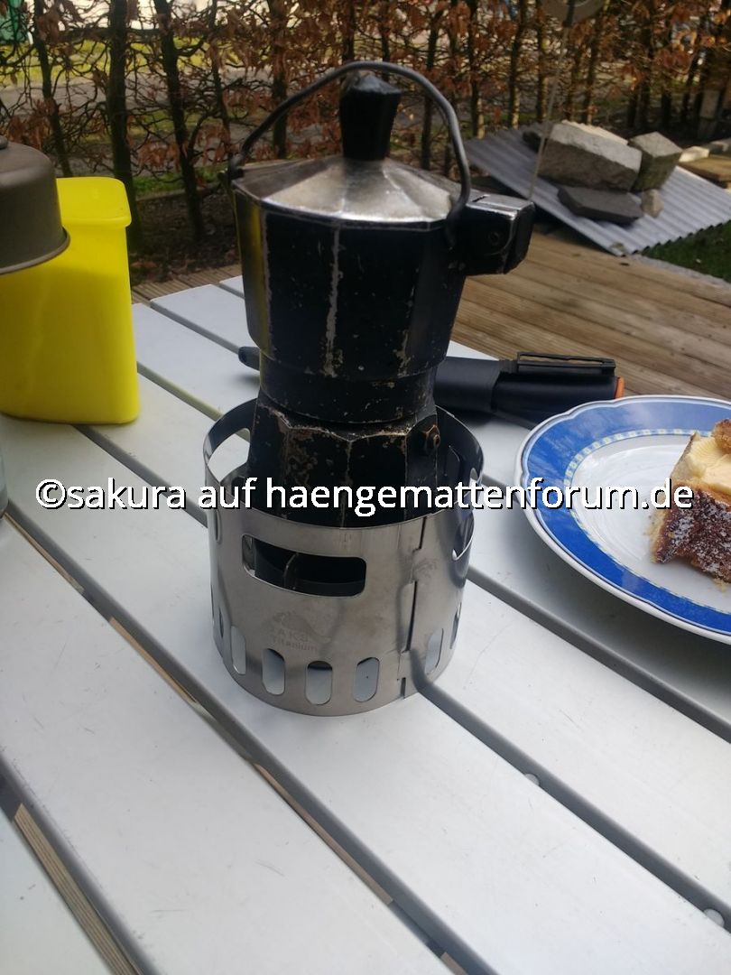 Und so nehme ich da lieber mal einen Spiritusbrenner. Klein, fein, kaum auffällig und fix genutzt um mal was warm zu machen.