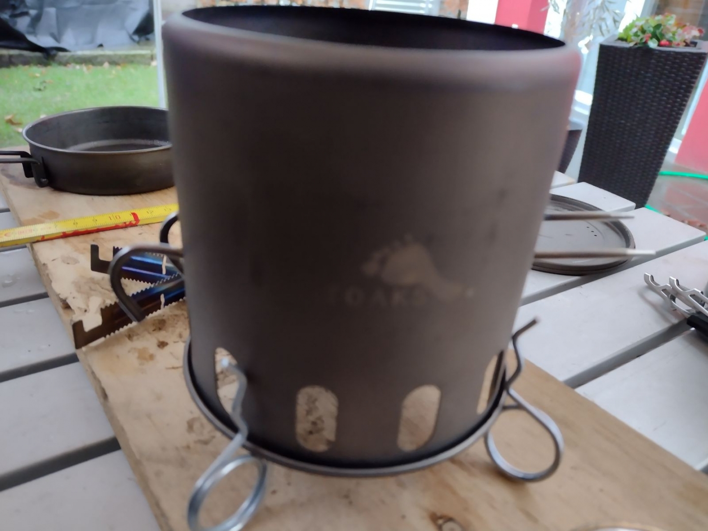ich habe meinem Toaks Holzvergaser ein kleines Update verpasst. Inspiriert durch ein YT Video, könnte ich auch hier aufgeschnappt haben, schaut die Sache dann so aus.