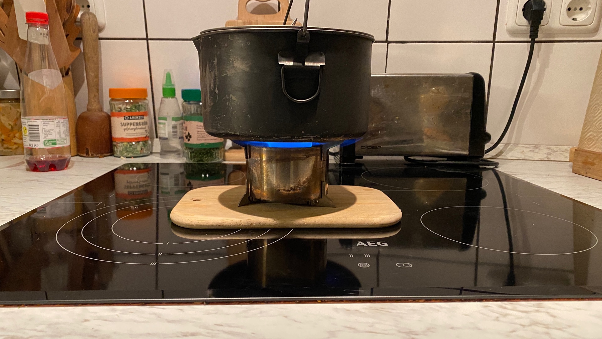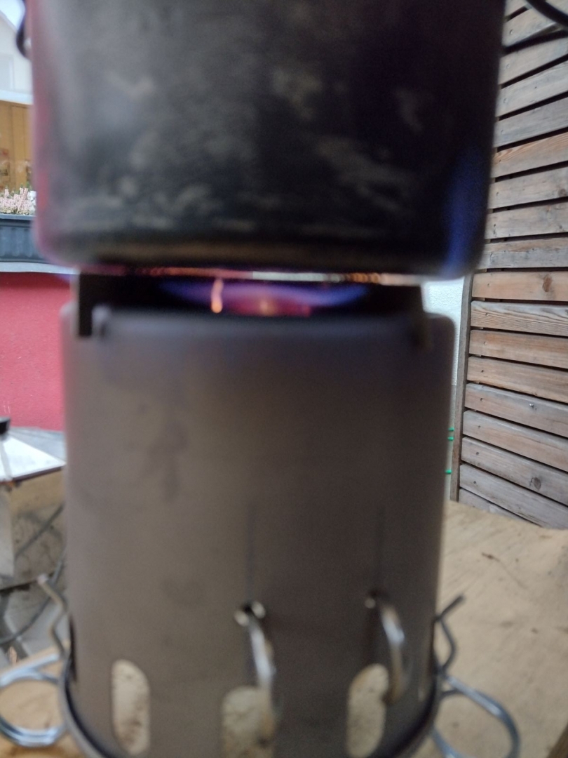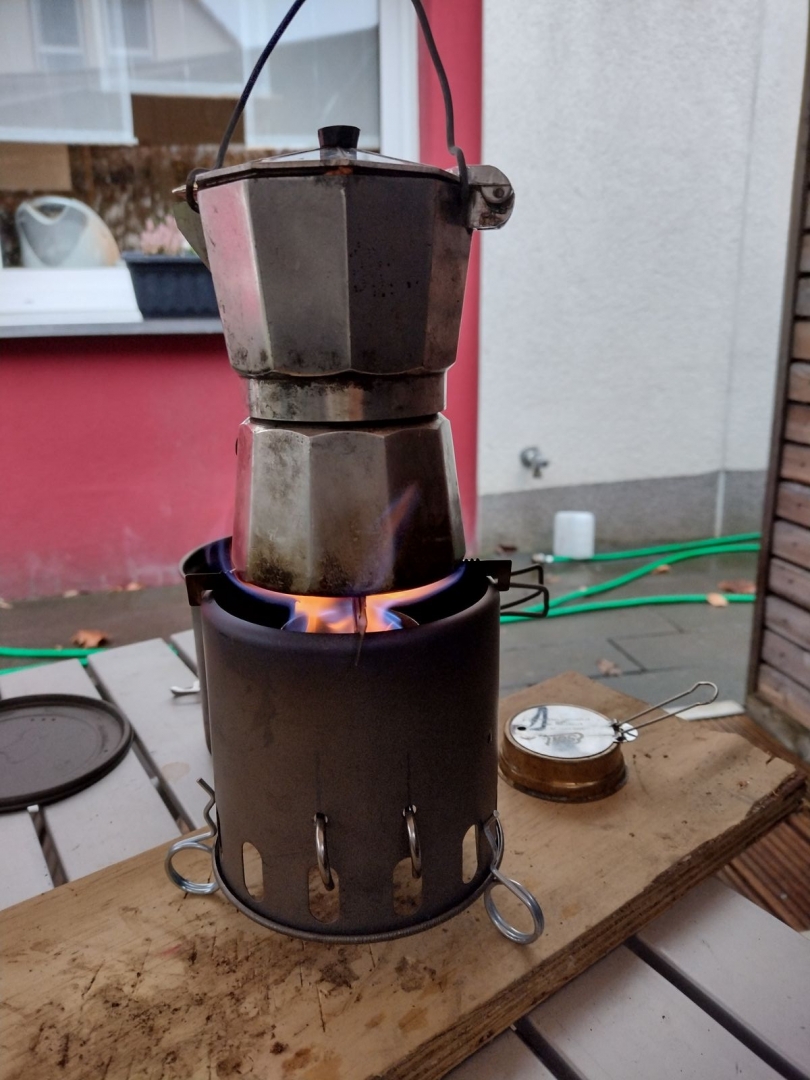 Noch paar Bilder weils so schön ist, mein Kaffeewasser (0.3l?) kocht mit V2b (mit grosser Öffnung unten) innerhalb 5min.