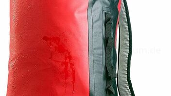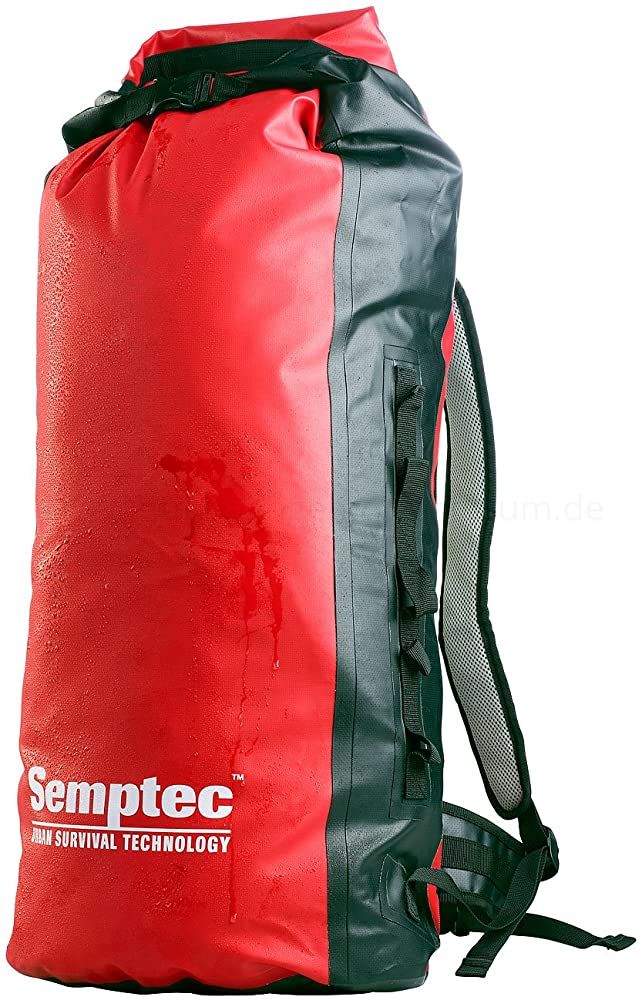Beim Packraften Semptec Urban Survival 70l, aber wenn der Rollverschluss zu ist deutlich kleiner, ca. 1kg, geht weniger ums Gewicht, Hauptsache wasserdicht. Wichtige Sachen nochmal in extra Packsack. Simple Bauart, 30€, Hüftgurt brauchbar.
