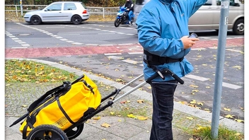 Übrigens: Wenn man nicht mit Duffelbag unterwegs sein möchte, kann man auch seinen Wander- oder Tourenrucksack auf den Wagen, mittels einer Gepäckspinne befestigen. Liegen hierbei die Gurte nach oben, ist das Gefährt auch schnell mal für eine unwegsame Strecke geschultert.