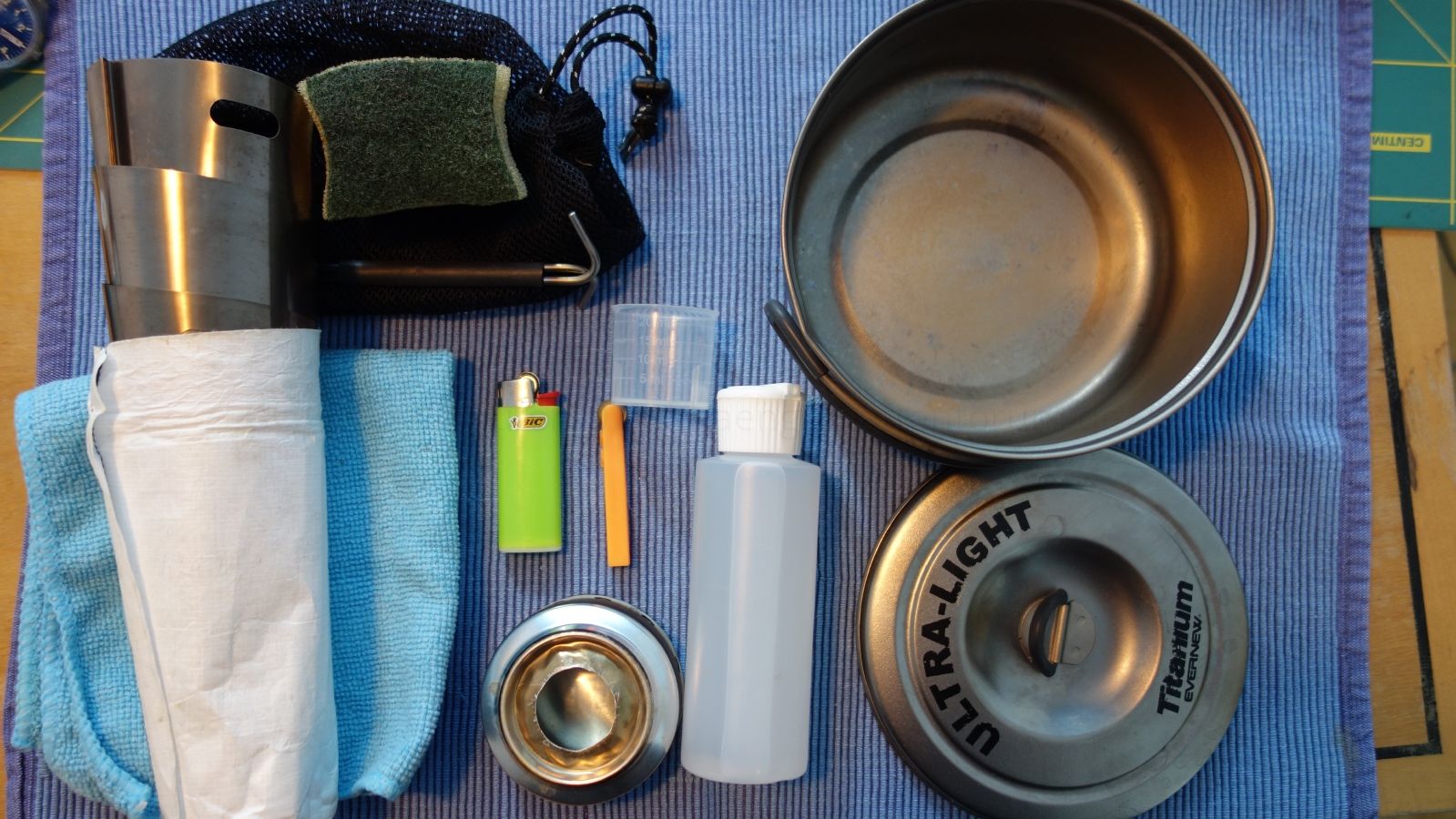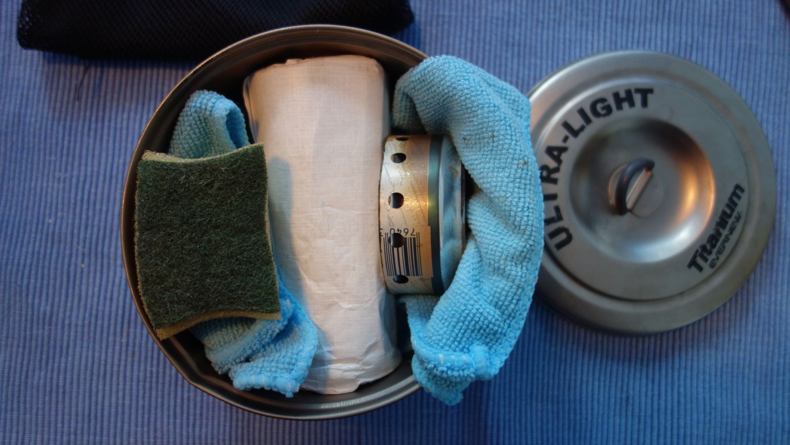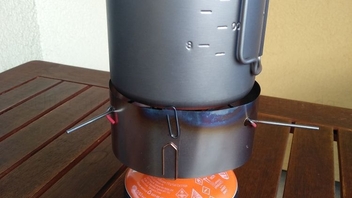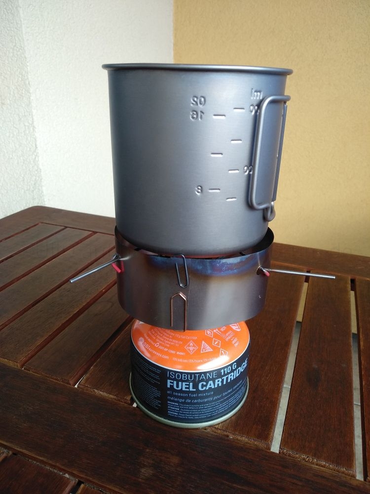 • Der Windschutz wiegt 13g. Mit Büroklammern. ;) Da die Folie um die Kartusche gewickelt in den Topf kommt, nimmt sie auch keinen Platz weg.