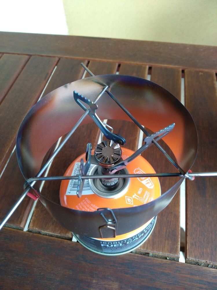 Als Brenner habe ich den BRS 3000. Ich glaube, mal gelesen zu haben, dass es auch weniger windanfällige Brenner gibt. Vielleicht geht es dann auch ohne Windschutz - das scheint bei dir so zu sein.