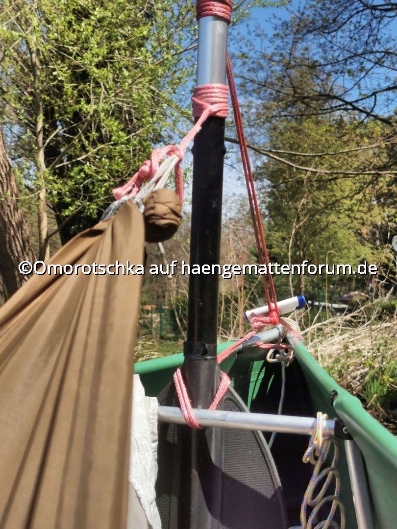 Die Bastellösung ähnlich dem 'Bushcraft' Hängestuhl aus einer einfachen Hängematte funktioniert aber auch ganz gut und ist natürlich viel bequemer![]()