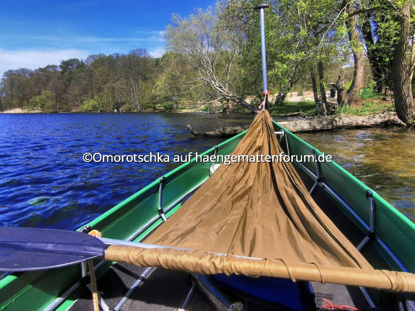 Gerade bin ich mit dem Kanu auf dem See und habe die Isomatte für die Pause nicht dabei.