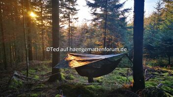 Ich habe mir die Plane nur übers Fussende gezogen und hatte nicht mehr Kondensation als sonst. Niederschlag war keiner angesagt und morgens in die Lichtung zu schauen und das erste Licht zu sehen...traumhaft: