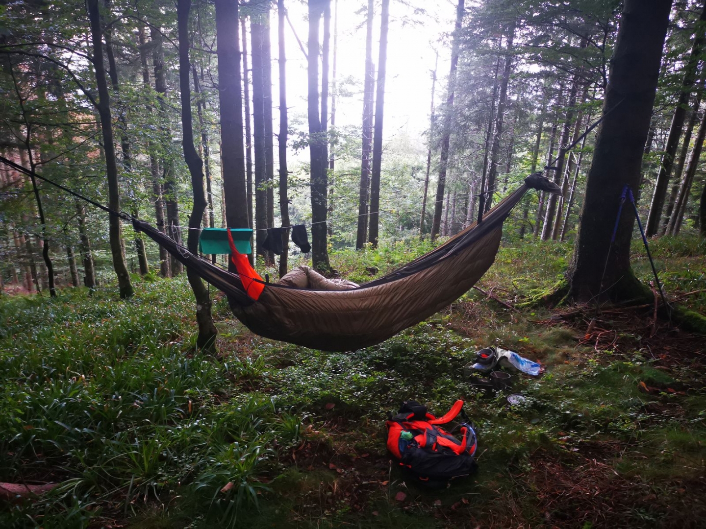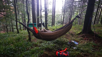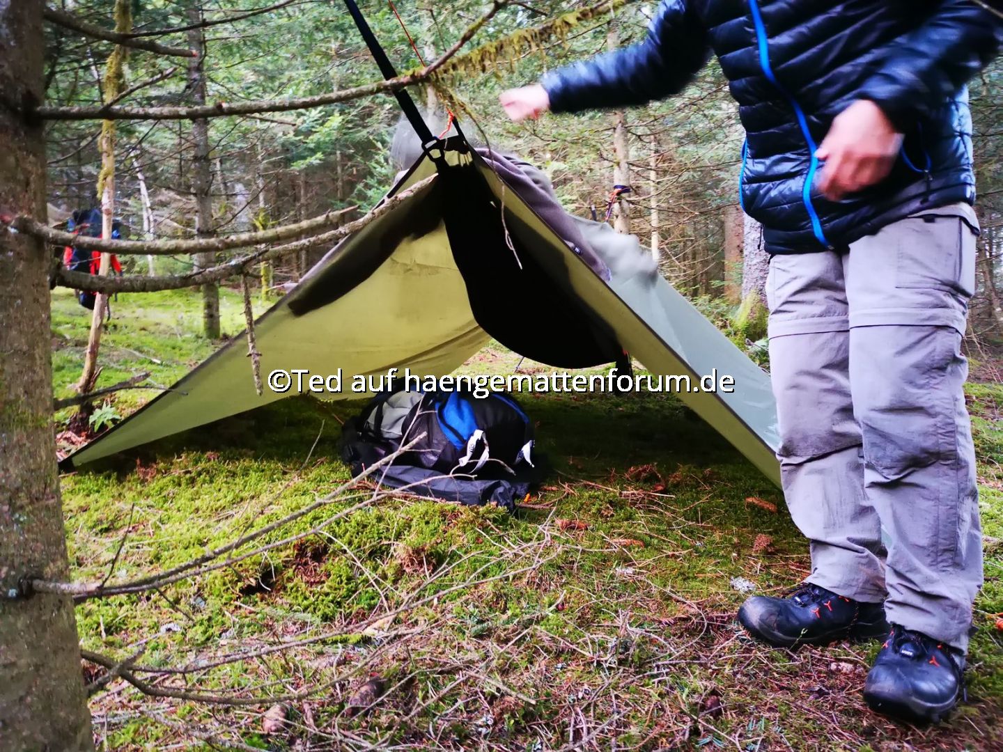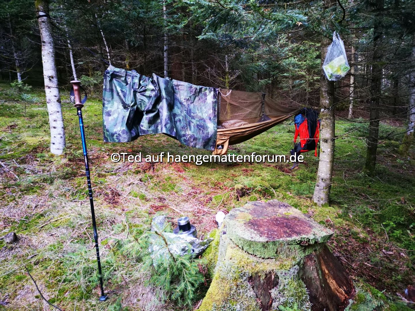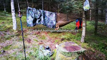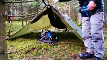 Wow! Das ist der niedrigste Häng, den ich je gesehen habe. :) Größer ist der Tarneffekt mit Biwaksack auch nicht.