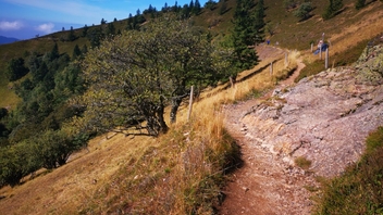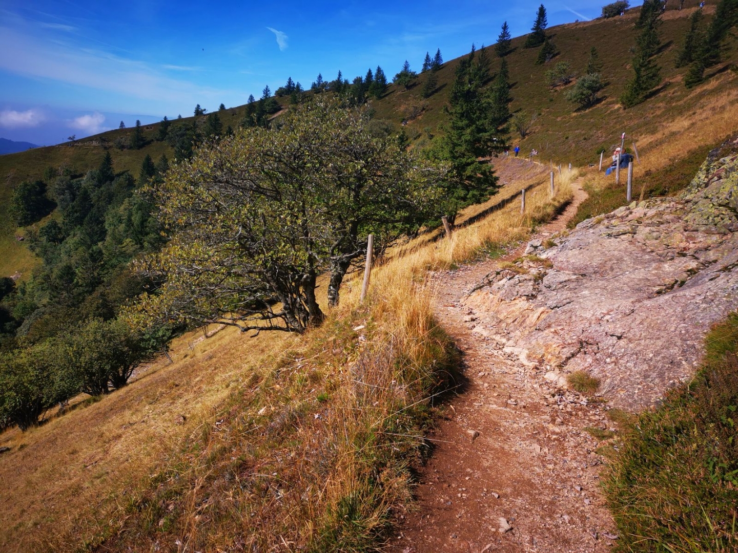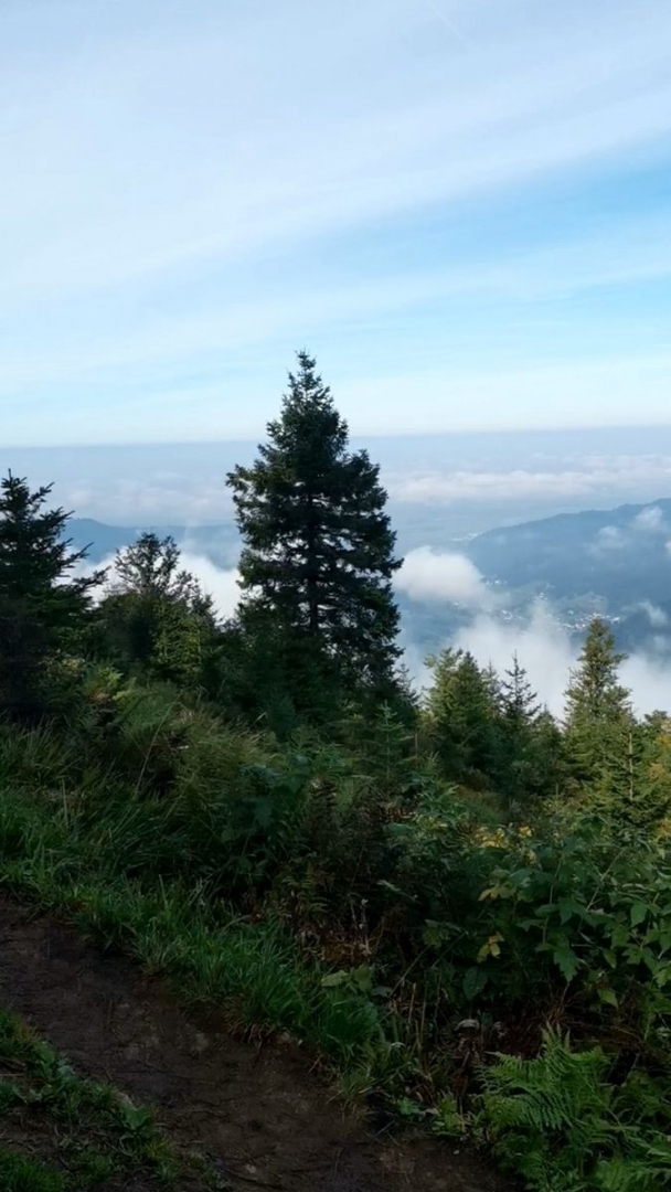 Auf dem Belchen grasen zwar auch Kühe, aber der An- und Abstieg kommt mir alpiner vor als beim Feldberg. Und teils hat mich die Vegetation mit den Nadelbäumen, die entsprechende geduftet haben, ans Mittelmeer erinnert - ein letzter Hauch von Sommer.