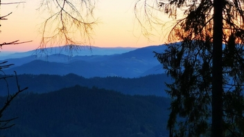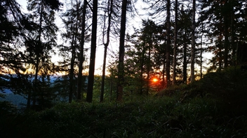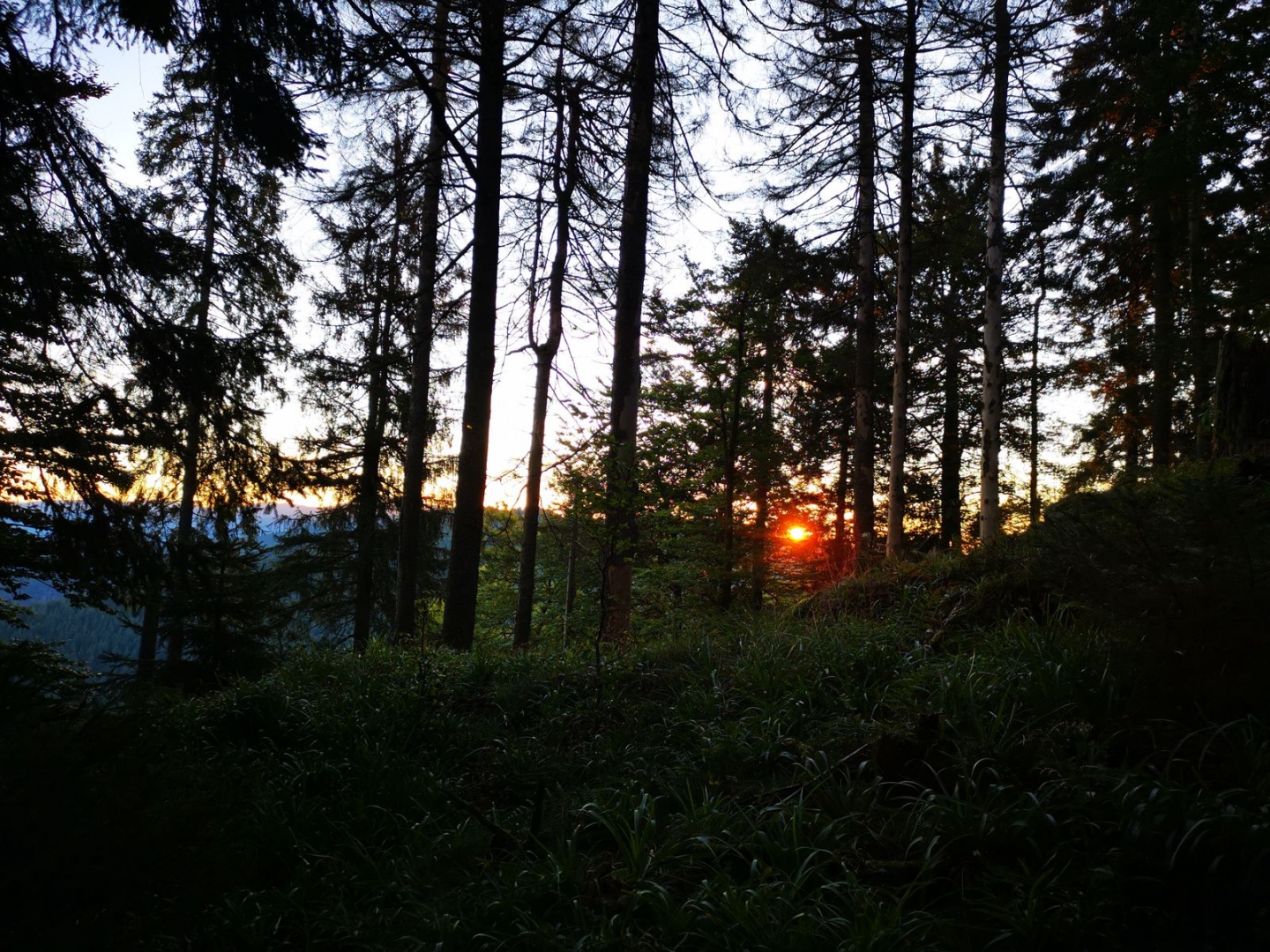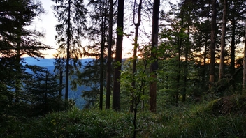 Am Abend habe ich mich an der Karte orientiert und eine Sackgasse bei den Waldwegen ausgewählt. Die erste war leider von Forstmaschinen umgepflügt. An der zweiten, die an einer Lichtung endete war leider ein Hochsitz. Aber an der dritten war dann ein schönes Plätzchen über dem Tal.