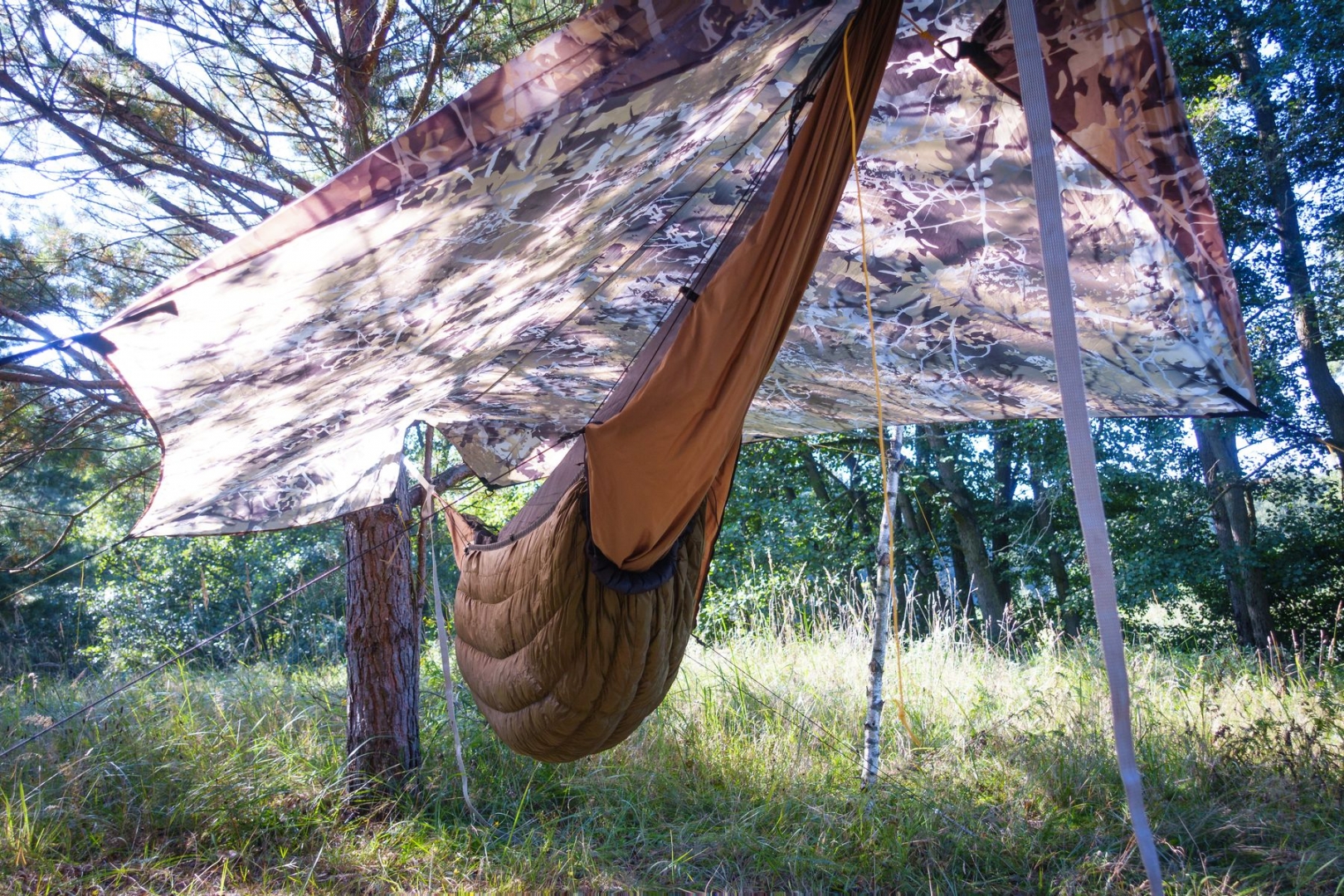 Aufs Tarp habe ich auch hier verzichtet, aber der Tau hat den Quilt am Morgen ziemlich durchnässt.