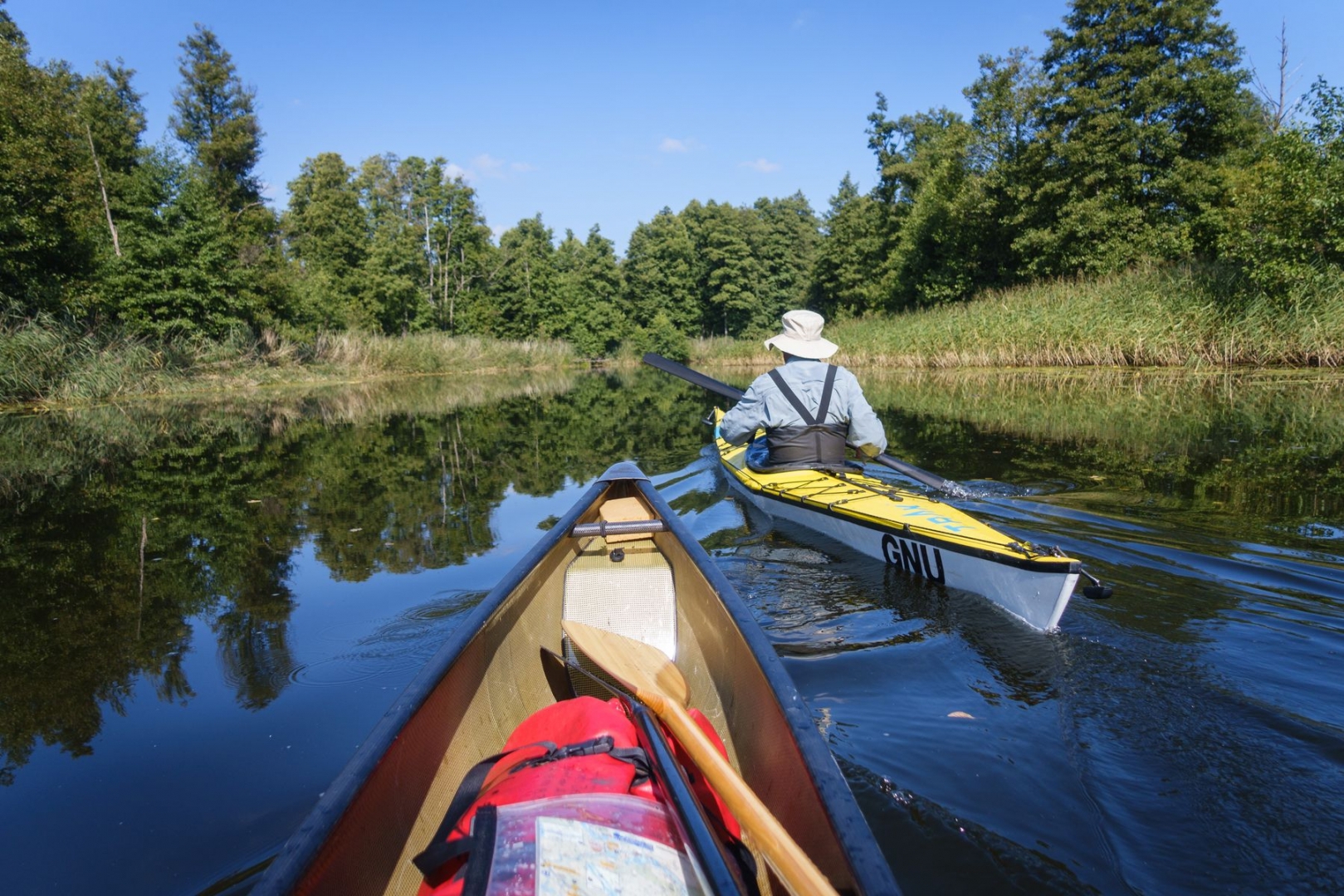 Weil der Spätsommer in den letzten Tagen die Temperaturen noch mal deutlich über die 20°-Marke geschraubt hat, sind Moch und ich mit Kajak und Kanu für drei Tage ins Havelland aufgebrochen.
