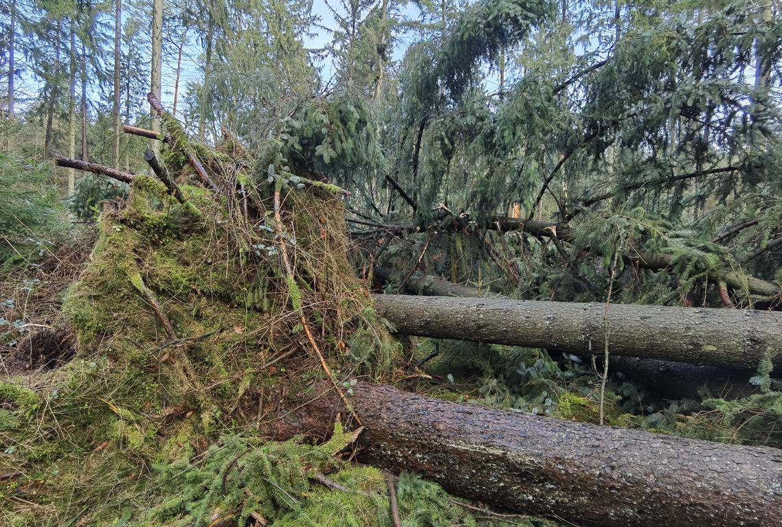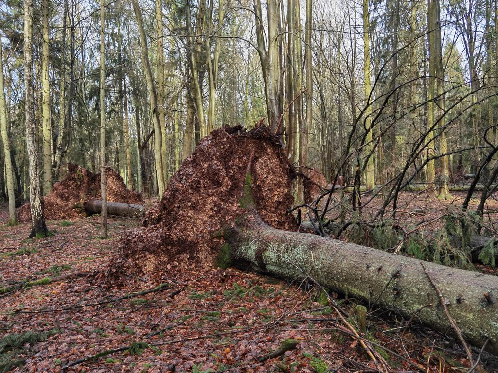 In der Schweiz hatte ich bisher den Eindruck, dass Nadelbäume (v.a. Fichten) häufiger als ganze Bäume umfallen, während Laubbäume bei Sturm eher Äste verlieren. Das würde sich mit deinen Beobachtungen weitgehend decken.