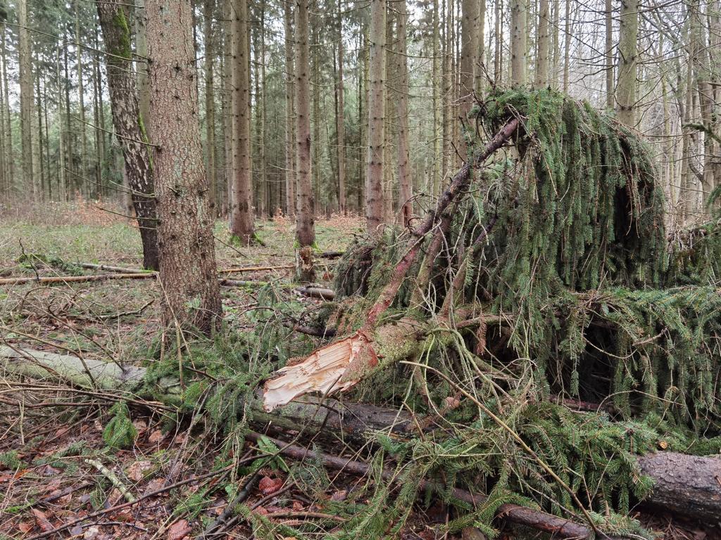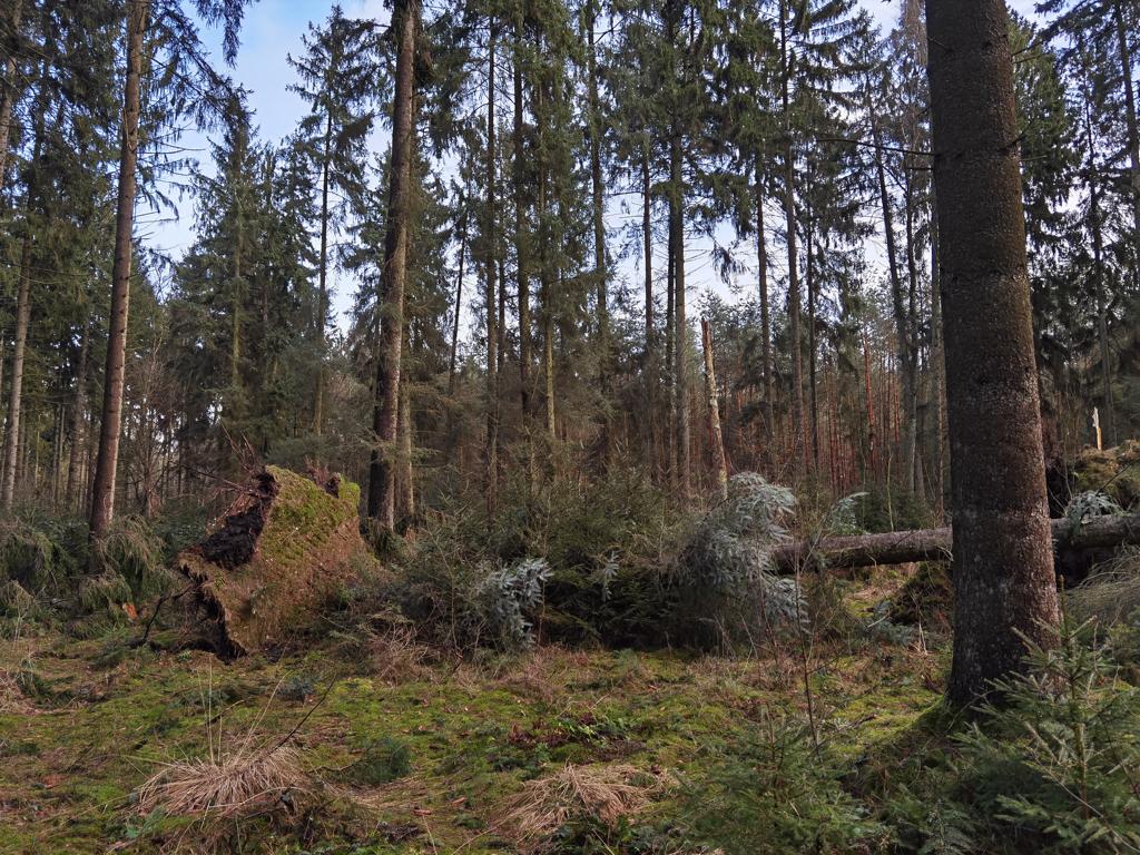 Im Sommer bin ich mit meinem Jung durch den Spessart gelaufen und wir haben ein riesiges Gebiet gesehen in dem überall Kronen von Fichten rum lagen. Die Kronen waren durchschnittlich 2-3 Meter lang und eindeutig abgebrochen. Das betraf Fichten allen Alters, also auch die mit den richtig dicken Stämmen.