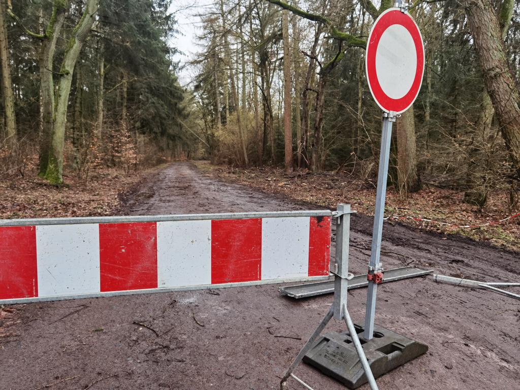 Die scheinen Windschneisen zu bilden, die besonderen Druck machen, es könnte aber auch daran liegen, dass auf der Wegseite keine Bäume stehen, die den Winddruck aufhalten könnten. Jedenfalls ist der meiste Bruch am Wegesrand