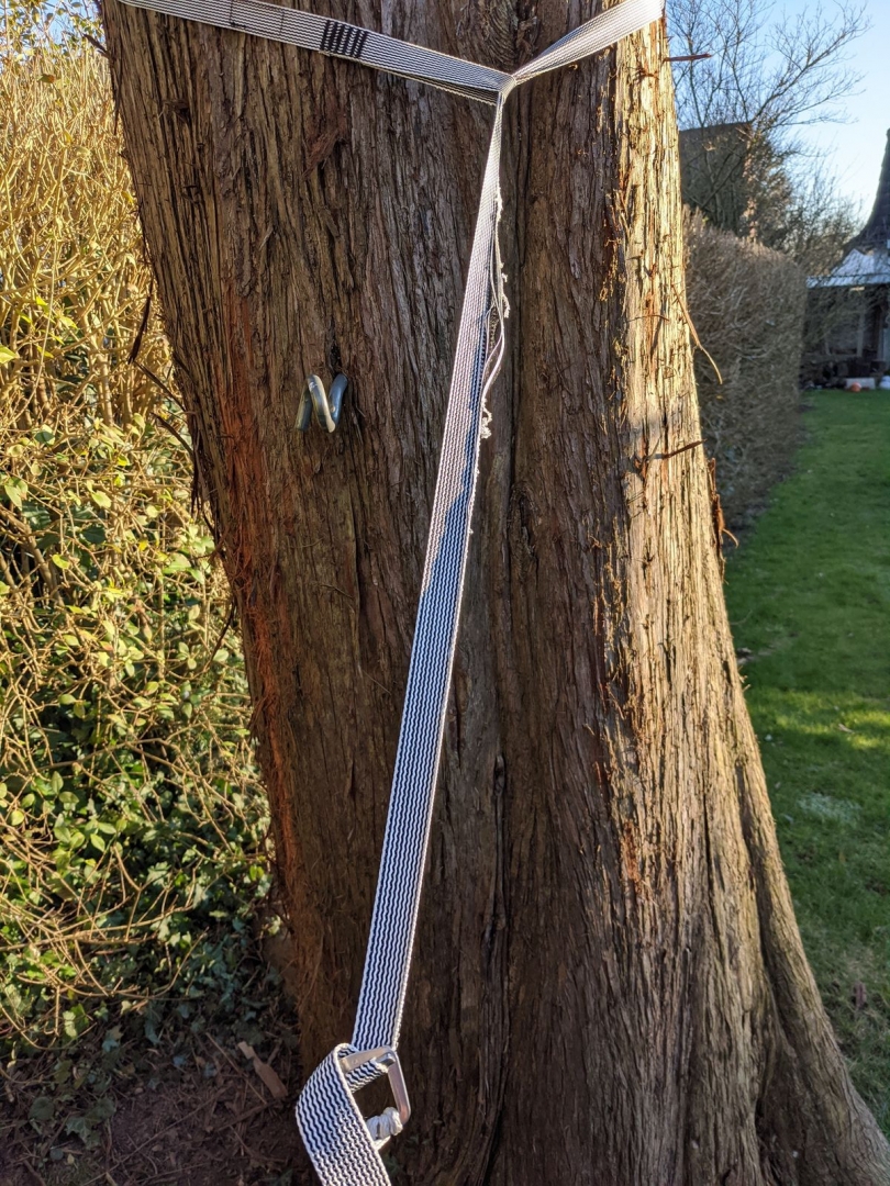 Ich hatte mir August von OneWind die "Hammock Ultralight Tree Straps" gekauft und eine unserer Hängematten darauf umgerüstet. Heute wollte ich mich hineinlegen. Beim Reinsetzen rutschte die Schnalle nach unten und zerstörte das Gurtband. Hängematte und Allerwertester sind jedoch unversehrt geblieben.