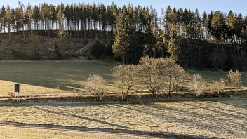 Bis Donnerstag Mittag hatte ich noch eine Tagung in Willingen. Das Mittagessen habe ich ausfallen lassen und mich gegen 12 Uhr auf den Weg gemacht. Die ersten Kilometer waren neblig und langweilig, aber dann wurde es auch landschaftlich richtig schön. Erstaunt hat mich auf dem ganzen Weg, wie sehr die Borkenkäfer zugeschlagen hatten. Und was die Käfer nicht geschafft haben, haben die drei Stürme platt gemacht, die wir zu Jahresanfang hatten. Wegen Holzarbeiten musste ich auch einmal einen etwas längeren Umweg machen.