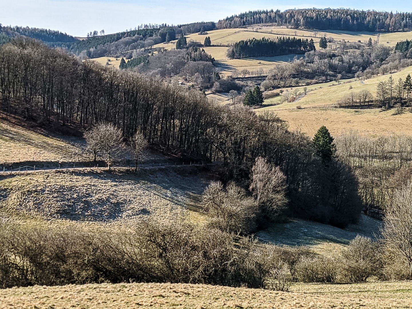 Die erste Nacht habe ich kurz nach Eimelrod meine Hängematte aufgehängt. Die zweite Nacht dann bei ca. KM 47. So hatte ich drei schöne Tagesetappen. Nachts war es um den Gefrierpunkt, tagsüber meist sonnig, aber windig. In den höheren Lagen lag noch Schnee.