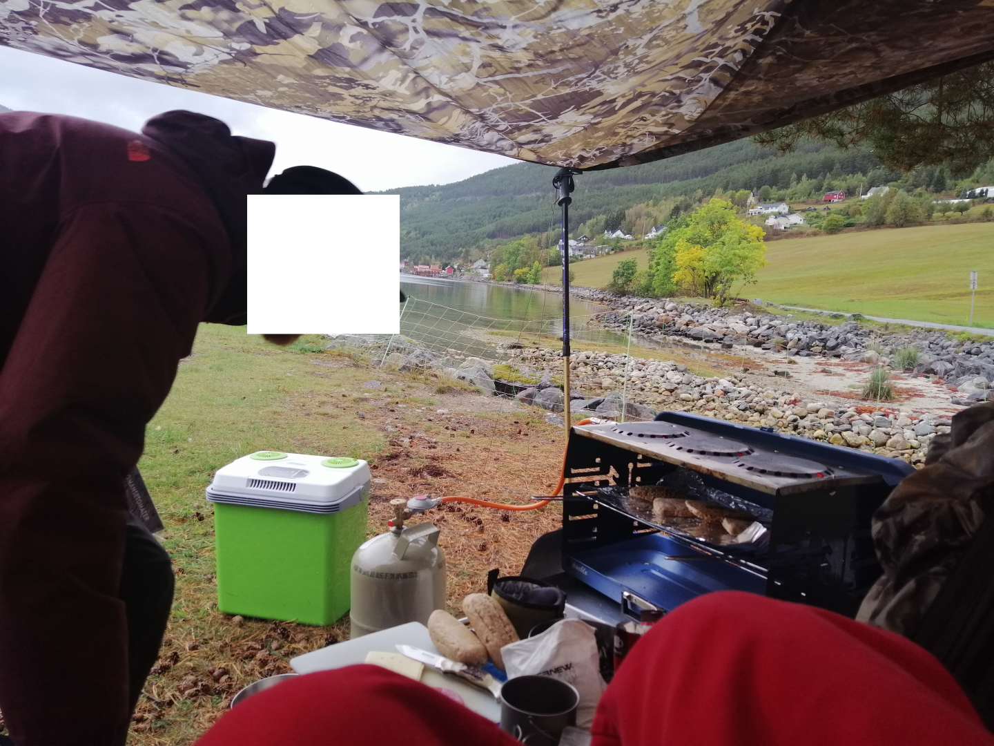 • Hier noch ein paar Fotos, um mal zu zeigen was ich meine. Beim ersten wird mir im Regen Frühstück in der Hängematte bereitet (überbackene Baguette vom Grill :P), während ich in der Hängematte bin (offene Türen, Porch-Mode). Auf dem 2ten habe ich mich im Januar vor Sturm eingeigelt. Beides ist das 11 Fuß Superfly von Warbonnet.