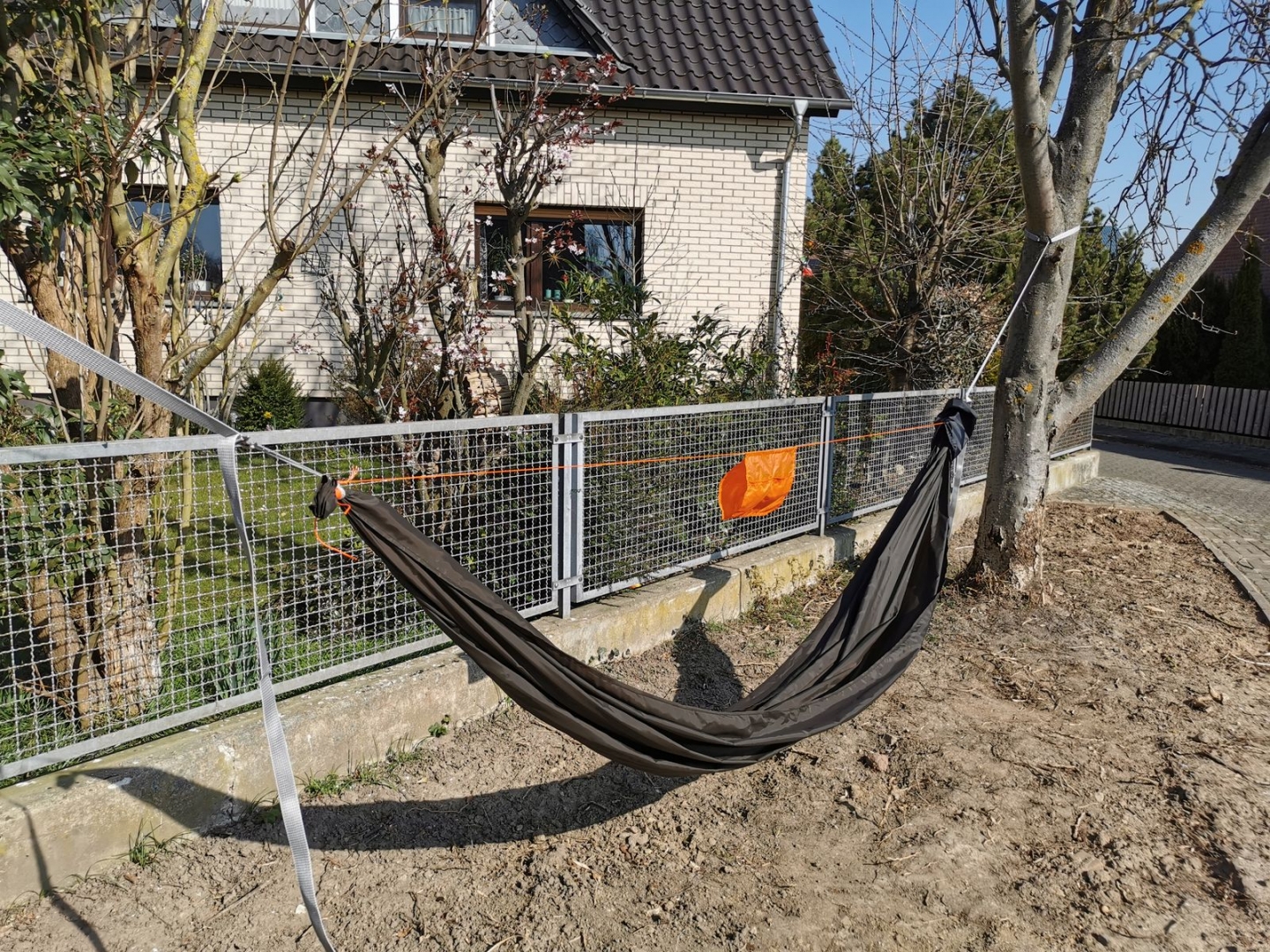 Die Hängematte ist zwischen den Loops 356cm lang geworden, obwohl ich wohl noch etwas Luft hätte. Reicht mir aber vollkommen aus. Aus dem Zing-It habe ich mir eine verstellbare Ridgeline mithilfe des adjustable Ridgeline Calculators aus dem Forum gebastelt - danke dafür! ![]()