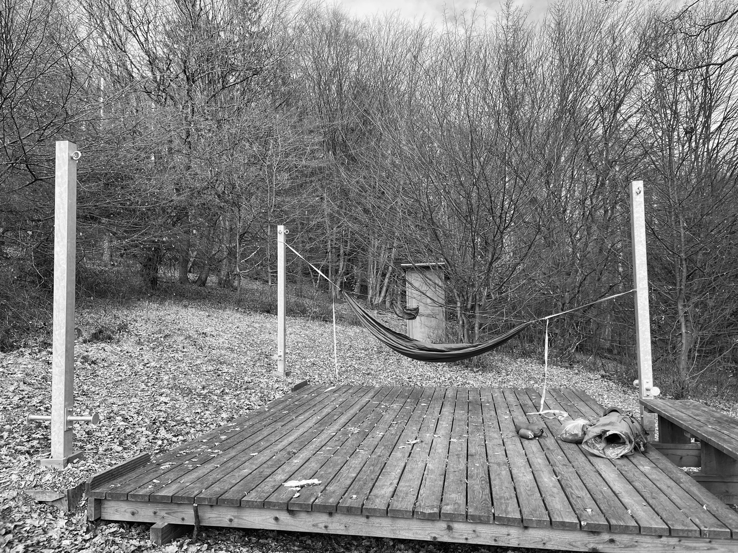 Wenn ich mich richtig an die Bedingungen der Eifel-Trekkingplätze erinnere muss man dort sein komplettes Setup auf der hölzernen Platform befestigen - ob man das jetzt für sinnvoll hält oder nicht: bevor solche Möglichkeiten wieder verschwinden halte ich mich lieber an die Regeln.