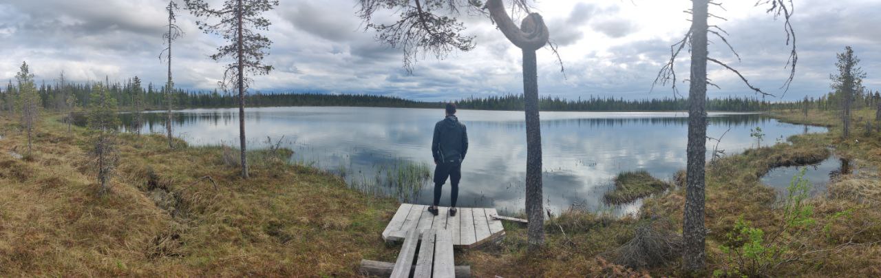 Der Wechsel in den nördlicheren Teil, der gleichzeitig den Übergang über den Polarkreis markiert hat, war dann deutlich zu spüren. Uns kam niemand mehr entgegen, Abends waren nur sehr wenig Leute an den auch eher spärlichen Hütten. Direkt nach einem kurzen Stück Straße kamen wir in ein Sumpfgebiet bei dem wir ordentlich nass geworden sind. Holzplanken gab es mal, sind aber verottet. Beschilderung war dürftig und man musste sich deutlich mehr Mühe geben vorran zu kommen. Bisher hatten wir vielleicht mal ein, zwei Mücken gesehen, jetzt kamen dutzende auf einmal (ist natürlich noch nichts gegen den Sommer). Der Weg wurde steiler und war nur noch ein leicht ausgelaufener Pfad war zu sehen. Hier fühlte man sich wie es klingt wenn man Wandern in Lappland sagt. Auch hier gab es wieder tolle Plätze und Aussichten und Hütten mit Feuerstellen. Ich kann diese Erweiterung nur deutlich empfehlen wer sich etwas mehr Abenteuer wünscht. Hier ein paar Bilder dazu: