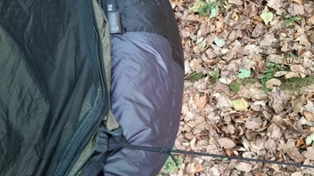 Die Füllung besteht aus recycelten Daunen mit 850 Cuin und das Füllgewicht mit Overfill bei 550g. Der UQ wiegt (habe es nachgewogen) glatt 800g und ist somit reichlich leichter als mein bisheriger One Tigris Winter Trekker, der über 1400g auf die Waage brachte und nur bis Komfort 0 bis -5 Grad geht.