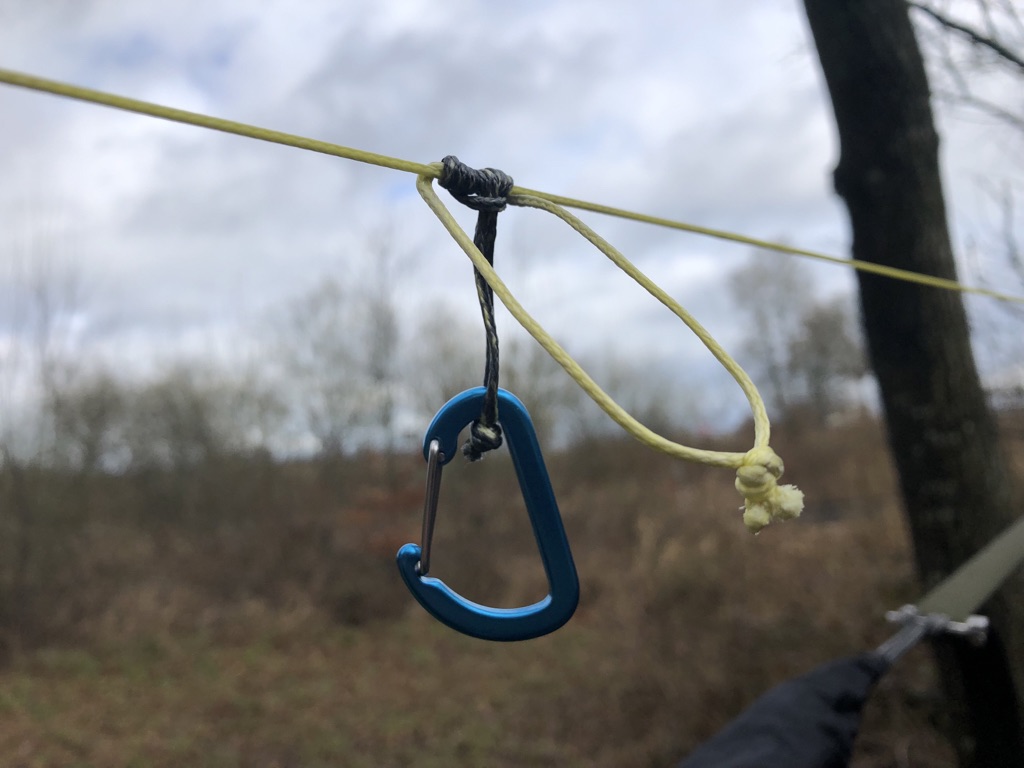 Nachdem mir ein Hookworm vom Seil gerutscht ist, habe ich noch einen dezenten Knoten gemacht um nicht nochmal den Waldboden absuchen zu müssen.