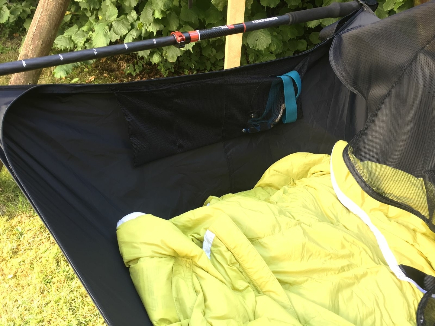 • Iso-Mattenkompatibel: und zwar für eine dicke Luftmatte, denn auf meinen Touren liege finde ich nur jedes 2. Mal was zum aufhängen und ein UQ auf dem Boden, naja...