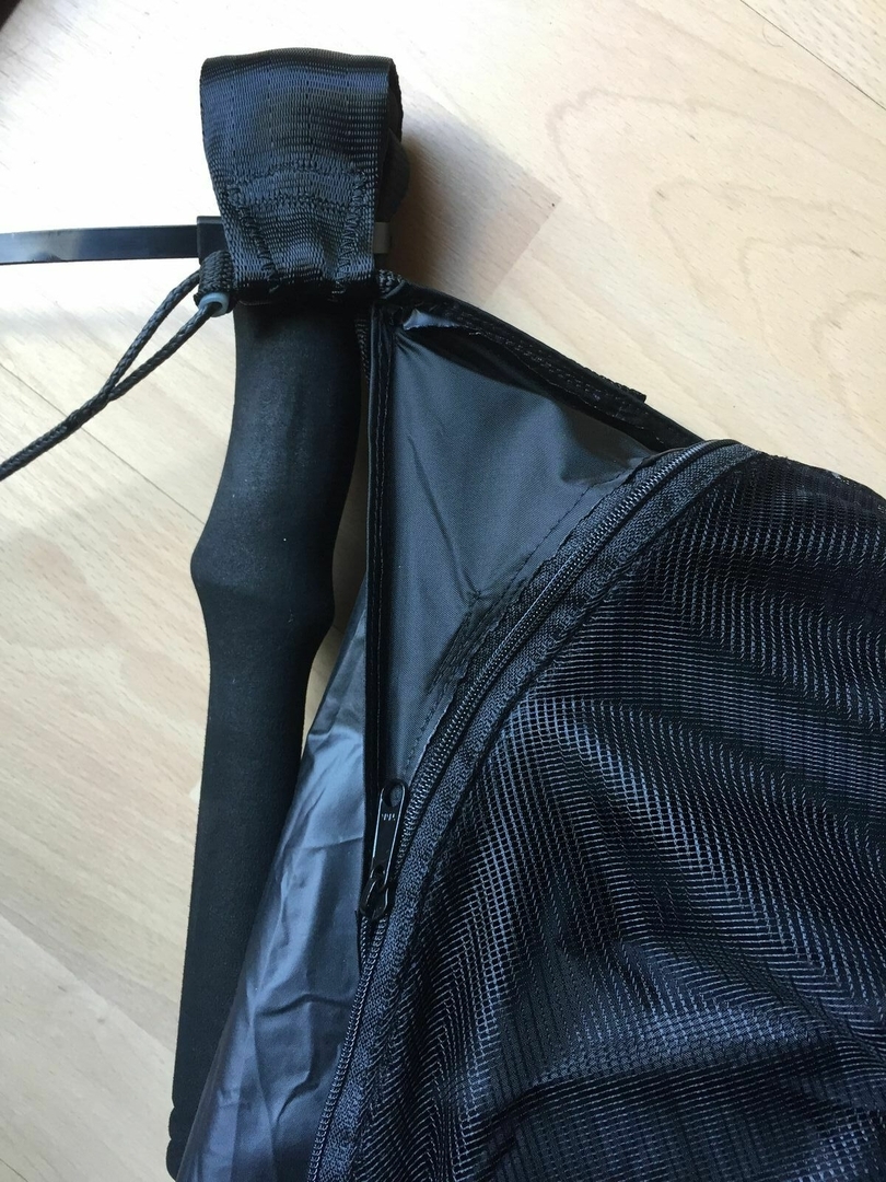 Ich habe den RV direkt bündig an meine HM Kante genäht, sodass der ziemlich geschützt ist, Problem dabei ist die extreme Spannung auf der HM-Kante. Die dehnt den RV so stark, das er (wenn man drin liegt) nur mit sanfter Gewalt zugeht, weil ja der Counterpart am Netz ungedehnt ist. Ich würde in Zukunft den RV an ein 10mm Band nähen und das dann an die HM Kante. Übrigens die Dreiecke, die auch Bic erklärt, an den Ecken der HM, kann man ruhig größer und runder Zeichnen, die sehen wertig aus und funktionieren super.