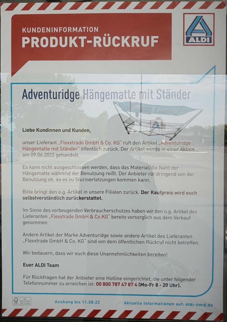 Bei uns in der Schweiz gab es unlängst auch mal eine Rückrufaktion von Hängematten. Mal schauen, ob ich dazu noch etwas finde...
