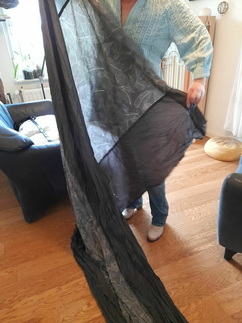 Mussten wir natürlich gleich auspacken, ist ja nur im eigenen Packbeutel.Robust wirkender Stoff. Die Belastbarkeit bis 150kg glaub ich sofort.