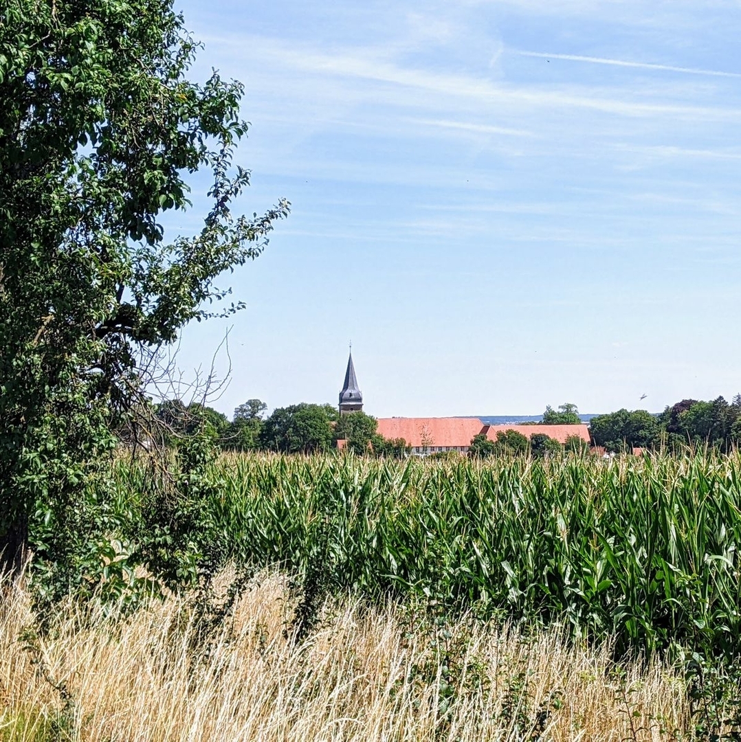 Ein toller Ausblick aus der Ferne auf das Kloster Gut Grauhof:
