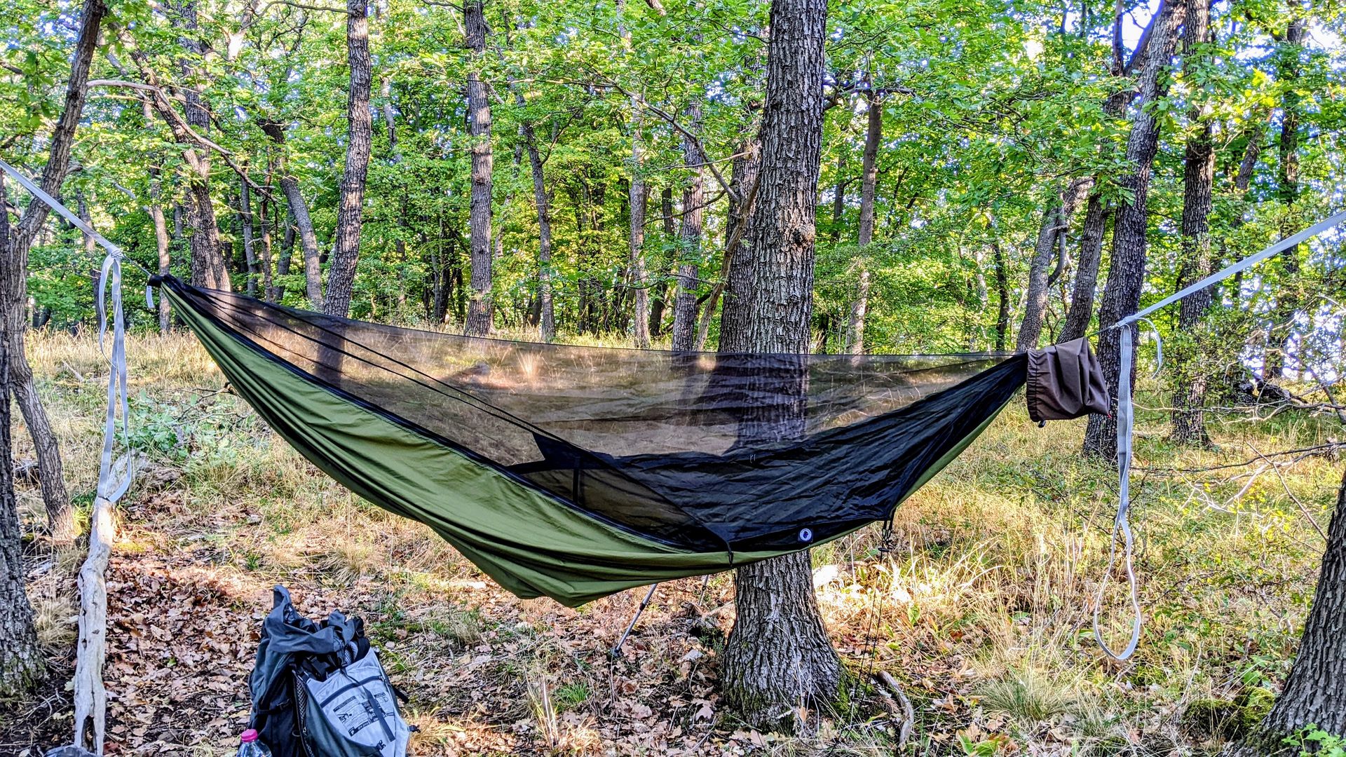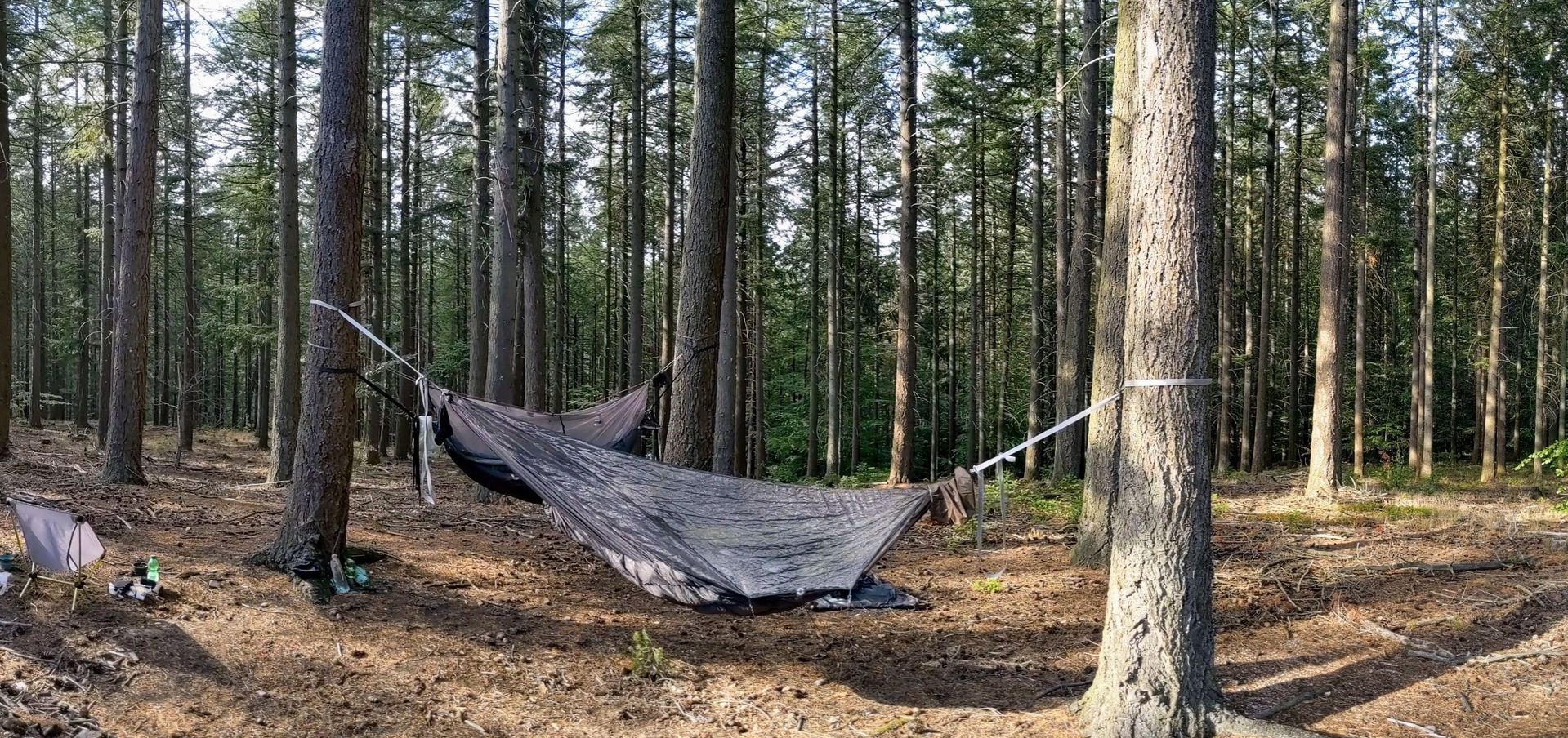 Übrigens hatte auch das Warbonnet Minifly tagsüber beim Wandern einen ersten halbwegs ernstzunehmenden Einsatz. Während der vorletzten Tagesetappe im Niemandsland längs der Bode zog plötzlich ein dreiviertelstündiges und mächtiges Gewitter auf und das Tarp musste als Not-Regendach herhalten. Kaum war es aufgehängt, da pladderte es bei starker Böe bereits richtig ordentlich los. Mit einer Hängematte darunter hätte es echt "eng" bzw. nass werden können, was den Regenschutz angeht, zumal es ordentlich windig war und das Wasser am Boden vom einschlagenden Regen wieder hochgespritzt ist. Mit einem guten Händchen für die richtige Aufhängung des Tarps bestimmt machbar, aber ein wenig Reserve oder Alternative ist für einen Beginner wie mich wohl nötig. Thunder!!!fly - ich brauche Dich wohl auch noch. ![]()