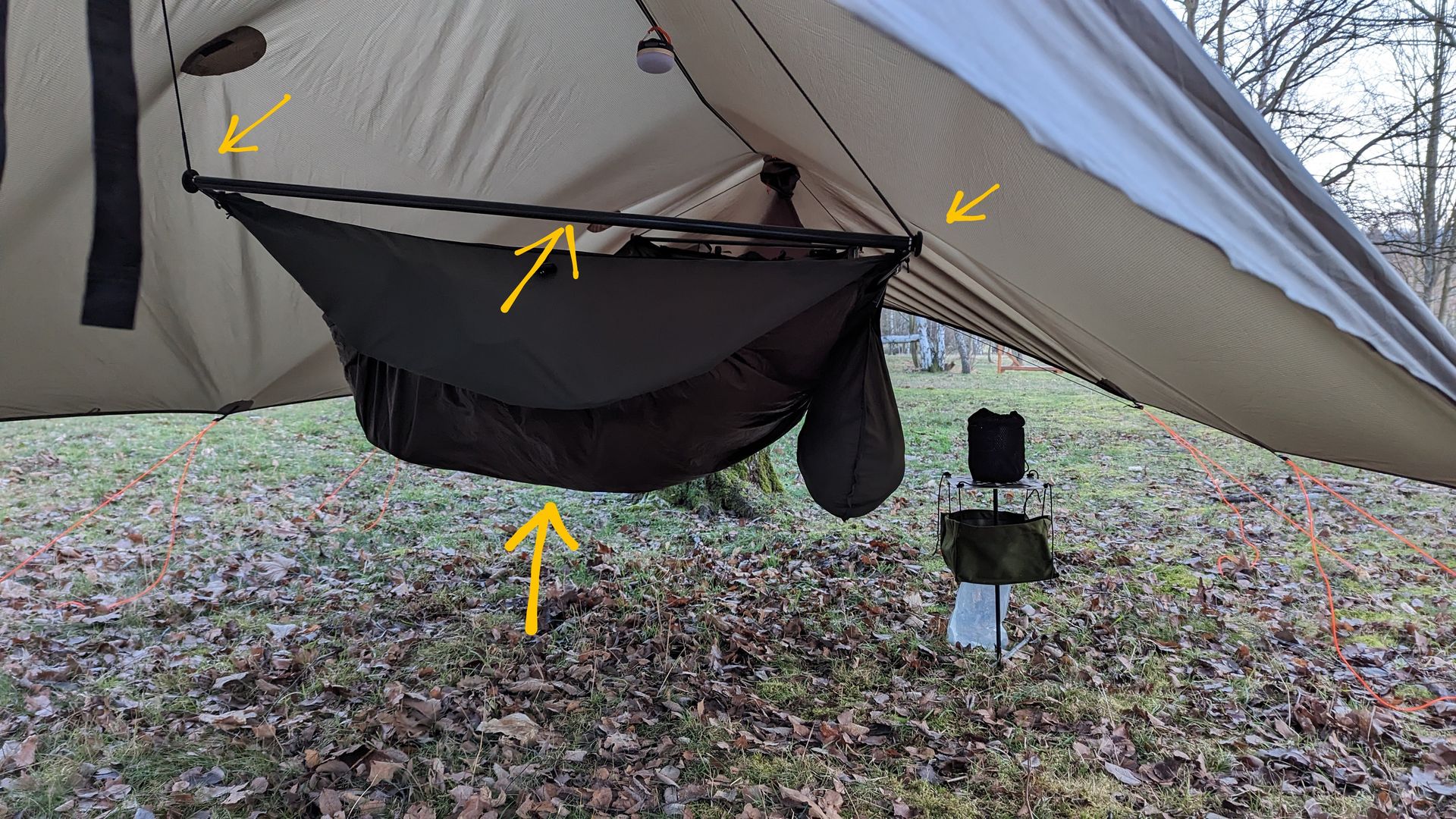 Auch der neue 65 g leichte und tolle UQP von Outdoorline hat sich vom Handling her bewährt. Mit vier Schlaufen einhängen, etwas straffen und fertig. Ob dadurch ein Zugewinn an Wärme erfolgt ist erstmal nicht zu beurteilen, dafür war es mit nächtlichen 3 Grad zu warm. Da ist der Lynx 0F wohl noch nicht auf Support angewiesen. Aber klar, es war mega-mollig! :love: