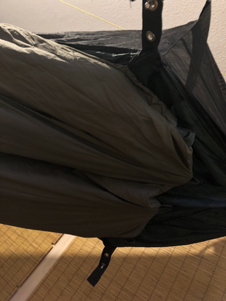 In dieser Hm liege ich auch im Gegensatz zu einer regulären Gathered End Hängematte nicht so diagonal sondern mehr horizontal ...........finde ich persönlich bequemer.