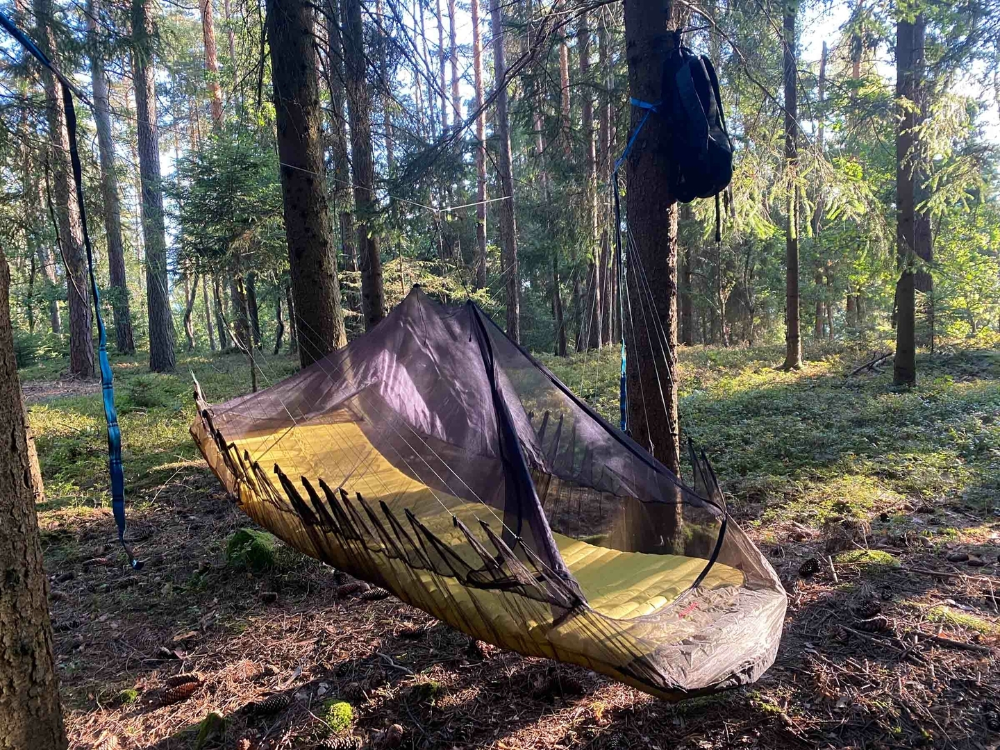 Nachdem ich die Cross Hammock Ultralight an anderer Stelle bereits vorgestellt hatte, will ich hier bekanntgeben, dass ich mich nun entschlossen habe, sie in den Shop aufzunehmen (auch wenn meine Vorräte momentan nur für wenige Exemplare reichen, weil das ultraleichte Moskitonetz momentan nicht lieferbar ist). Ich selber bin eigentlich nur noch damit unterwegs, weil mir nicht nur das geringe Gewicht sehr gut gefällt, sondern auch die perfekte Rundumsicht, die man daraus hat. Aber dieses Modell ist leider nichts für schwerere Leute und Nutzer, die robuste Ausrüstung mögen. Denn das Material ist wirklich "ein Hauch von nichts" - und entsprechend empfindlich.