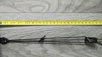• Ok. Die Schnur ließ sich mit dem Selfmade-Spleißwerkzeug doppelt durchziehen. Dieser Doppelpack sitzt nun recht stramm im Leinenspanner, aber von der Gummispannung her wirkt mir das nun deutlich passender. Sieht etwas seltsam aus, aber wird bestimmt erstmal besser funktionieren als vorher und sollte mit drei bis vier Zentimetern Elastizität hoffentlich ausreichen.