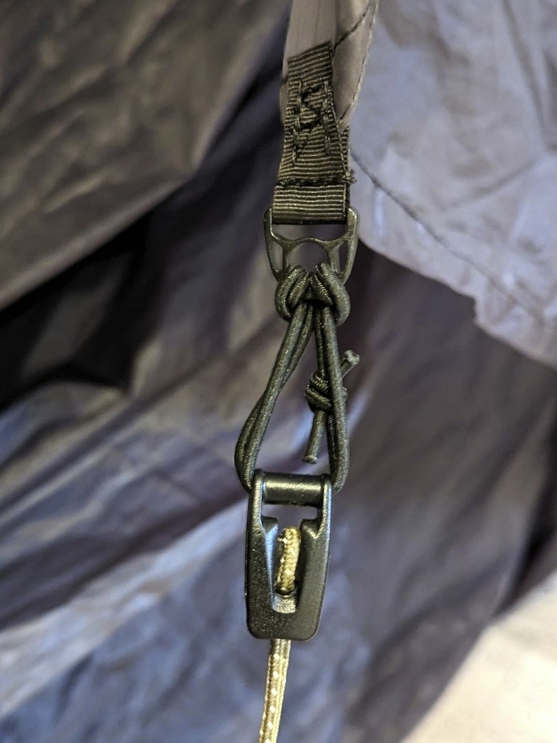 Shock Cord an den Ground Tie Outs des Tarps