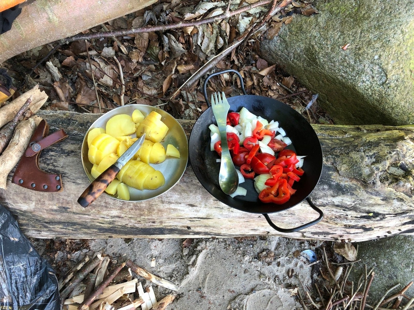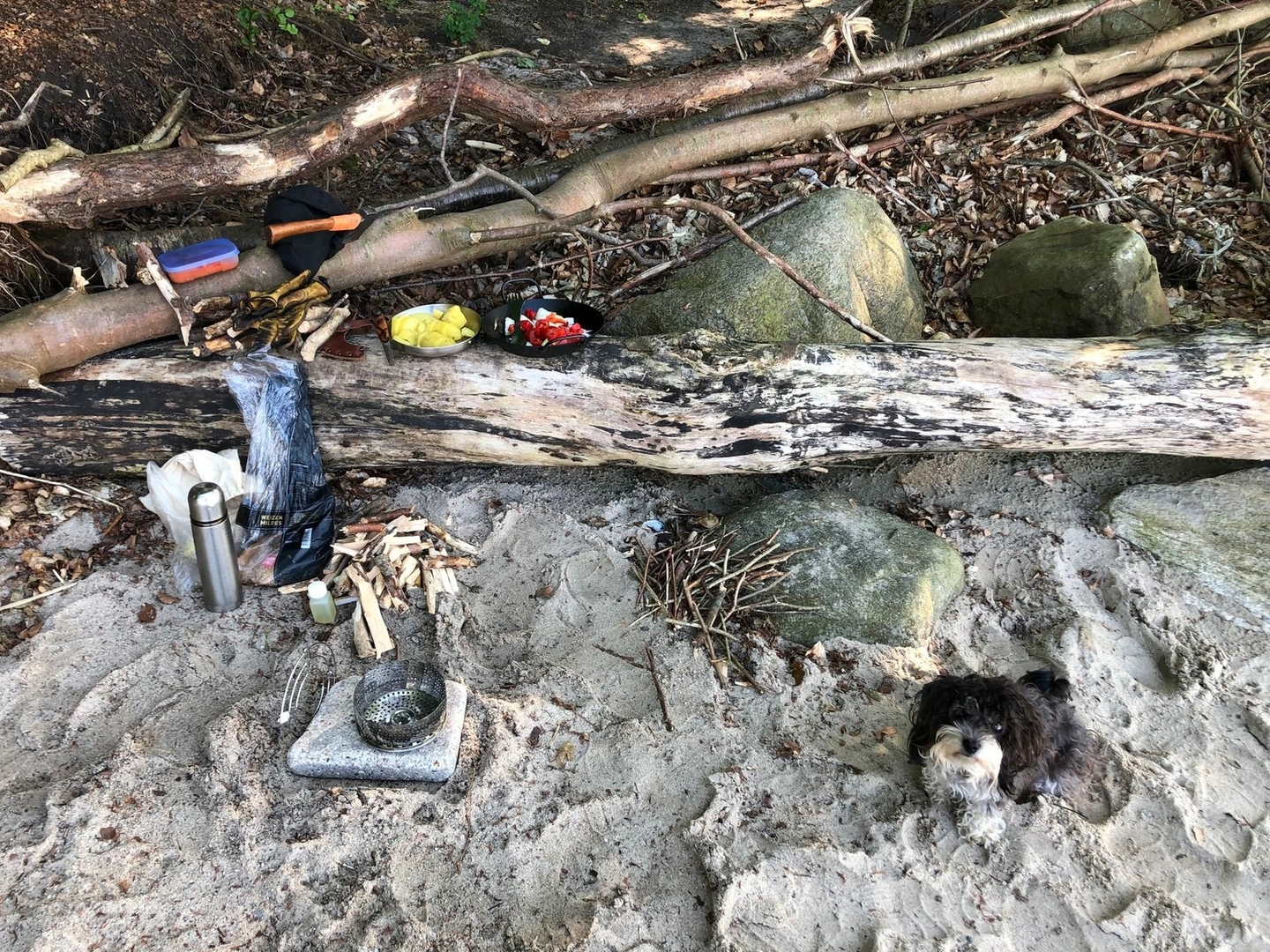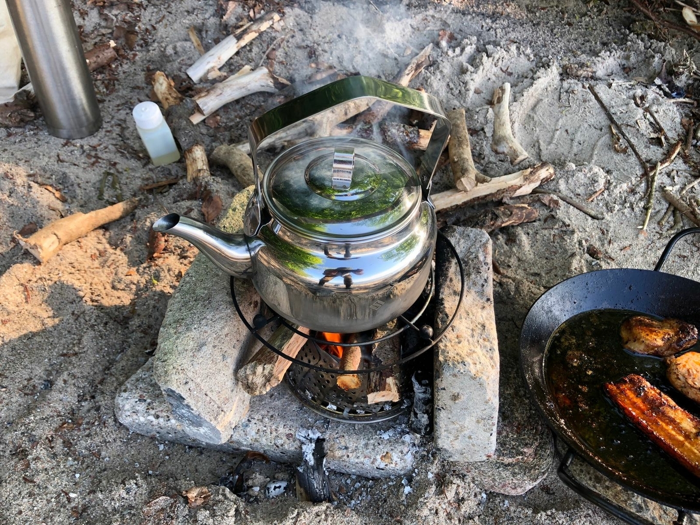 Gekocht wurde diesmal auf meiner DIY Dunsteinsatz-Feuerschale............abends mit Holz und Frühstück mit Spiritus.