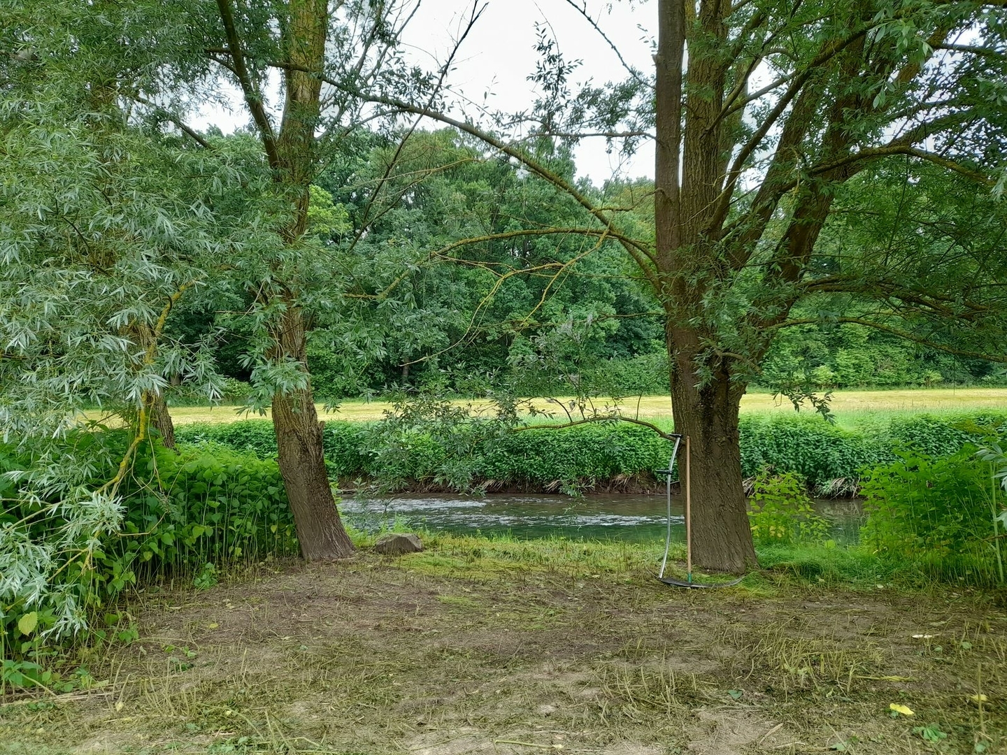 Am Ufer jedoch stehen teils gewaltige Weiden, tief hängen die Zweige und der Mähtraktor liess den dichten Brennesselrand direkt an der Uferkante stehen.