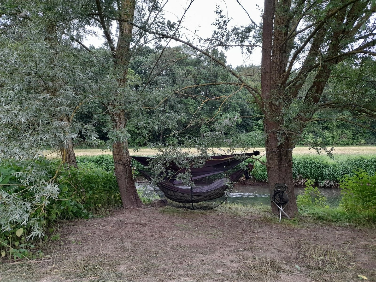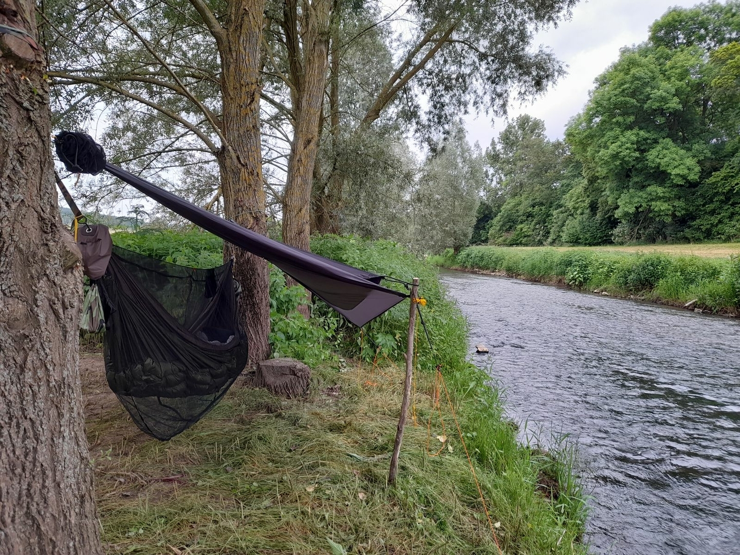 Plätschernd das Wasser, leicht rauschend die Weiden, von Reihern und Enten beäugt und erste Fledermäuschen gar ausmachend, schlug frohgemut ich mein Lager zur Nacht denn auf.