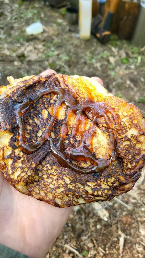 Die Zubereitung auf dem Vargo mit dem Spiritusbrenner ging so rasant von statten, daß ich noch einen Schuss Wasser zugeben mußte, damit das nicht im Topf anbrennt. Geschmacklich war das übrigens auch sehr angenehm.