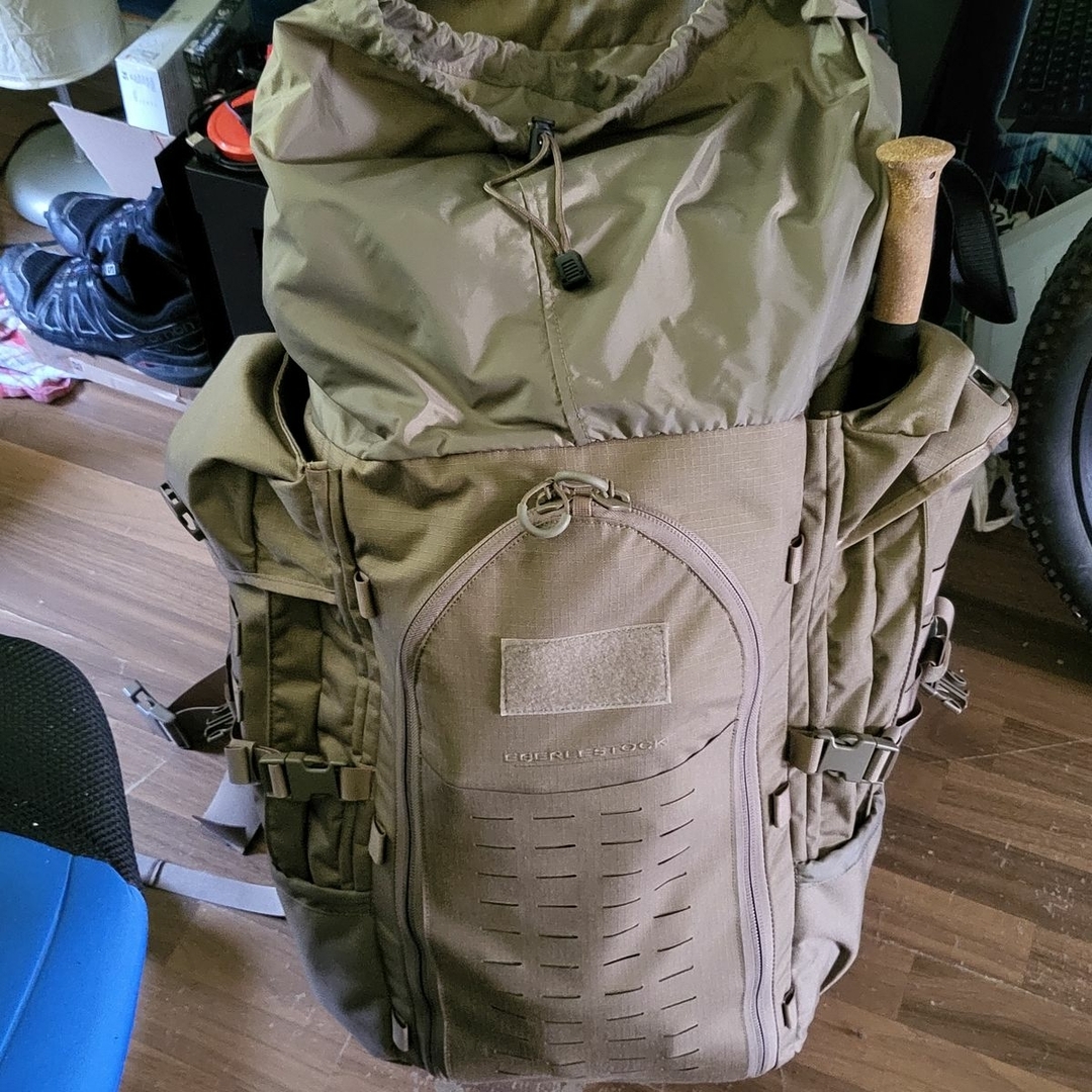 Da ich ja inzwischen zumindest das ganze Schlafzimmer, also Schlafsack, Poncholiner und die Hängematte in den Packsack bekomme und jenen dann sogar in die Halterung des Frontloader war das schon mal gut.