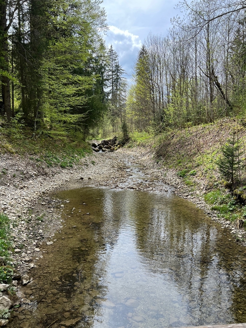 Dann weiter Richtung Langenrain, wo wir ein nettes Plätzchen kennen. Unterwegs gemerkt, dass ich meine Wanderstöcke beim Wasserfassen am Dürrenhof gelassen habe