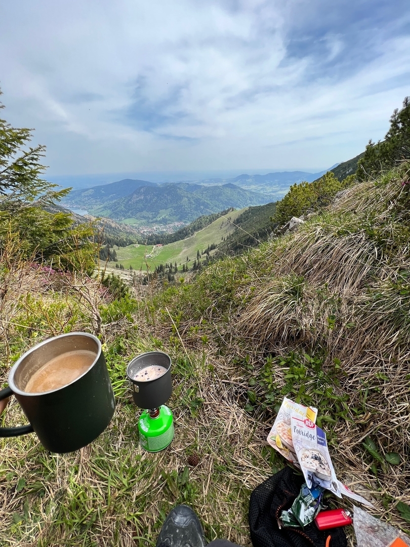 Ich war am Wochenende mit meinem Bruder und einem Freund in der Gegend um den Spitzingsee wandern. Am ersten Tag haben wir den Brecherspitz bestiegen und dann auch in der Nähe unser Lager aufgeschlagen. In der Früh konnten wir den Sonnenaufgang bewundern und mit Blick auf den Schliersee Porridge & Kaffee frühstücken. Zum Abschluss haben wir noch auf einer Alm Kaiserschmarrn gegessen.