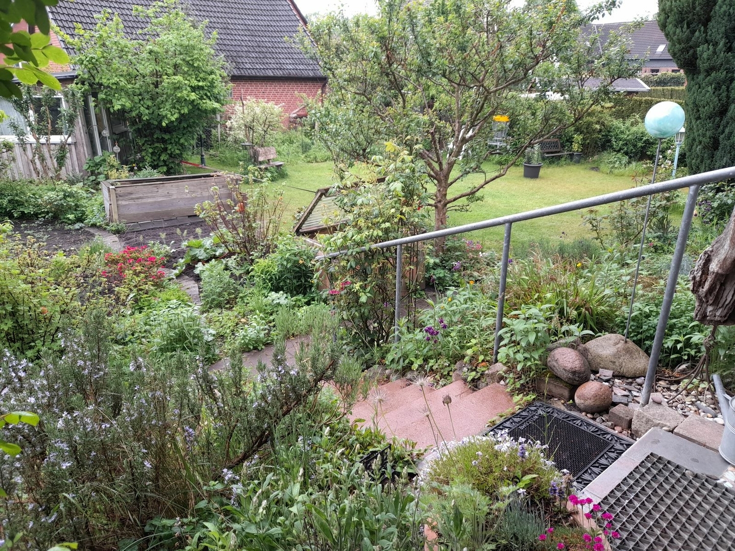 Bei einem längeren Rundgang durch den Garten haben meine Frau und ich noch keine zufriedenstellende Lösung für eine dauerhafte Nächtigungsstatt gefunden. Das 12ft-Tarp hat nun mal einen Grundflächenbedarf von ca. 4,7x3,2m und damit komme ich überall mit Nutzflächen oder Verkehrswegen in Kollision.