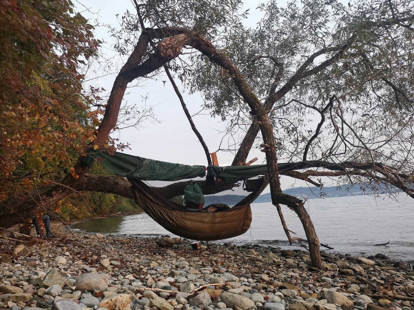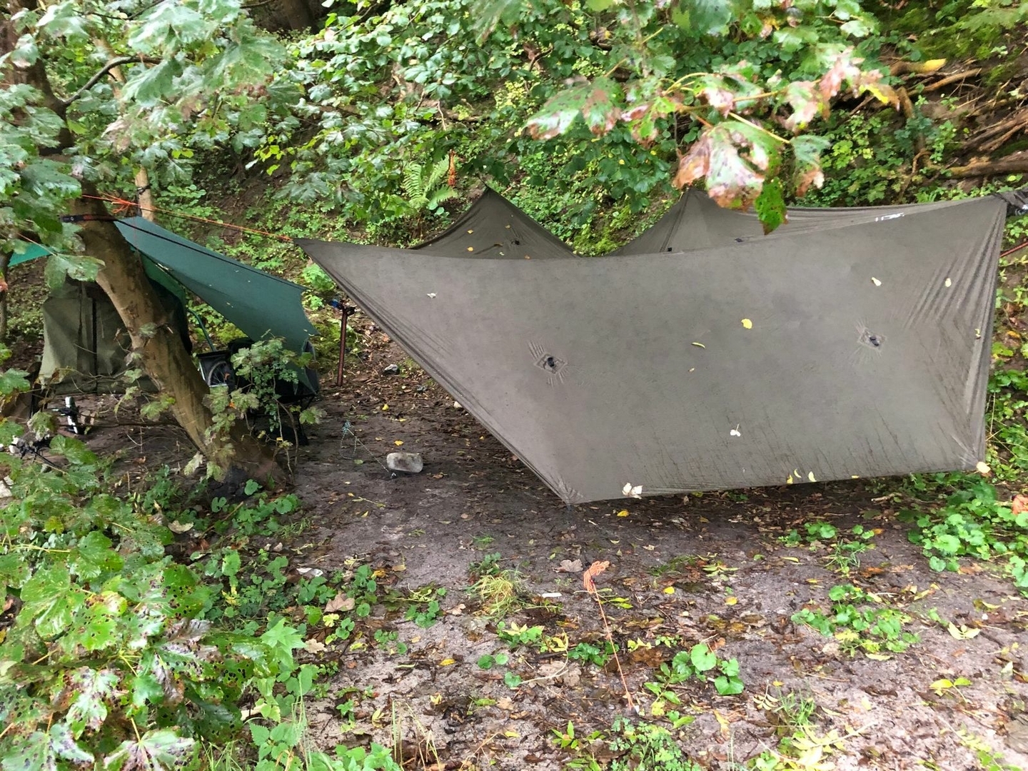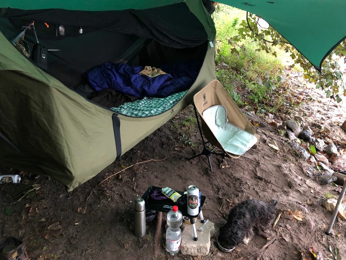 Später habe ich dann doch noch das Tarp aufgebaut, da es doch recht frisch wurde und ein Wind aufzog.