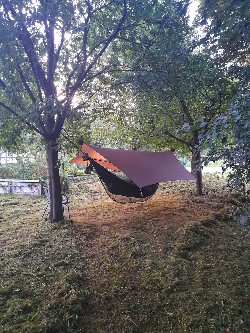 Vergangene Nacht kleiner Overnighter mit ein paar ehemaligen Arbeitskollegen auf dem Grundstück. Hab mich mal mit einem etwas anderen Tarp Aufbau ausprobiert. Fands mega. Warm genug war es dank Onewind Underquilt und Aufdopplungsdecke auch.