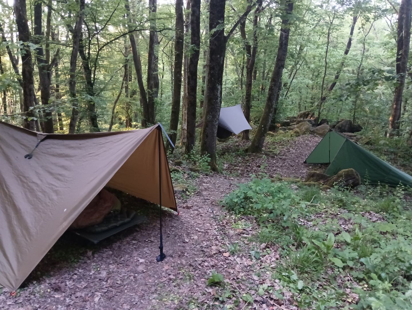 4x6m Tarp braucht viel Platz... Die Aufhängung mit einer Continouus Ridgeline ist dabei aber eine gute Idee, da man hier etwas leichter nachjustieren kann.