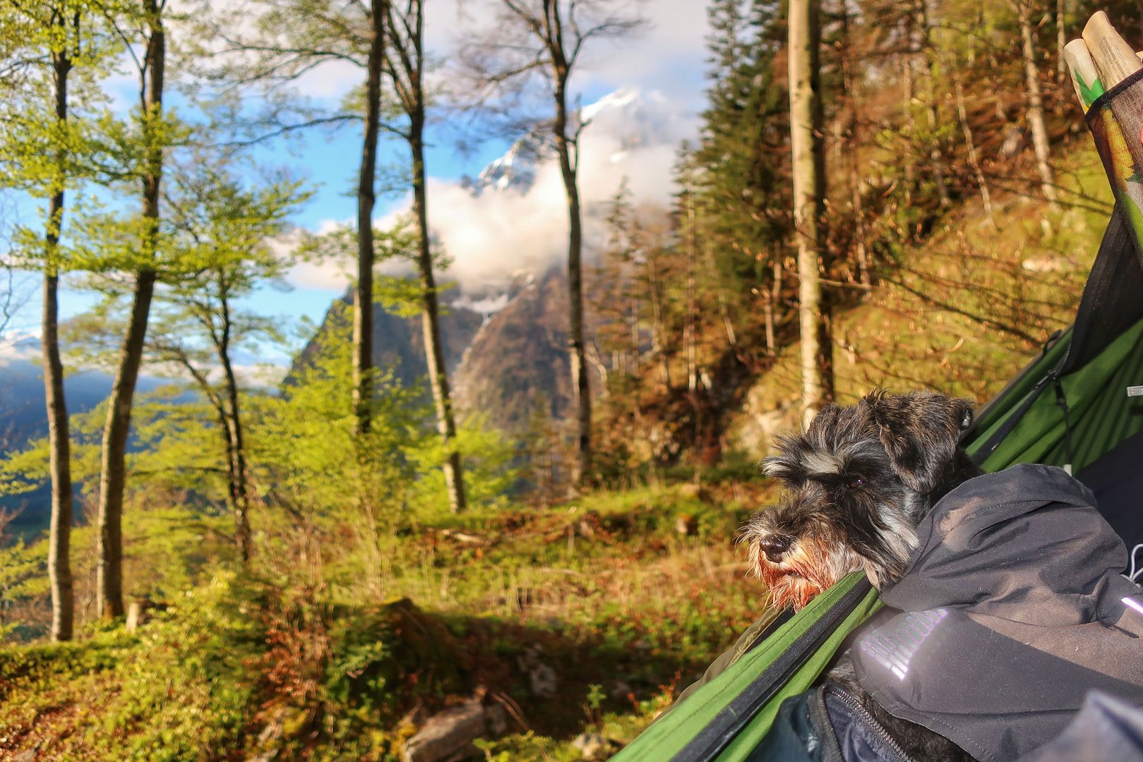 Die Nacht war dann doch recht frisch für den Hund und als das Zähneklappern und Gemecker zu viel wurde durfte er beim Mitstreiter mit in die Hängematte... Eine TTM mit Wookie ist also groß genug für die Zwei...